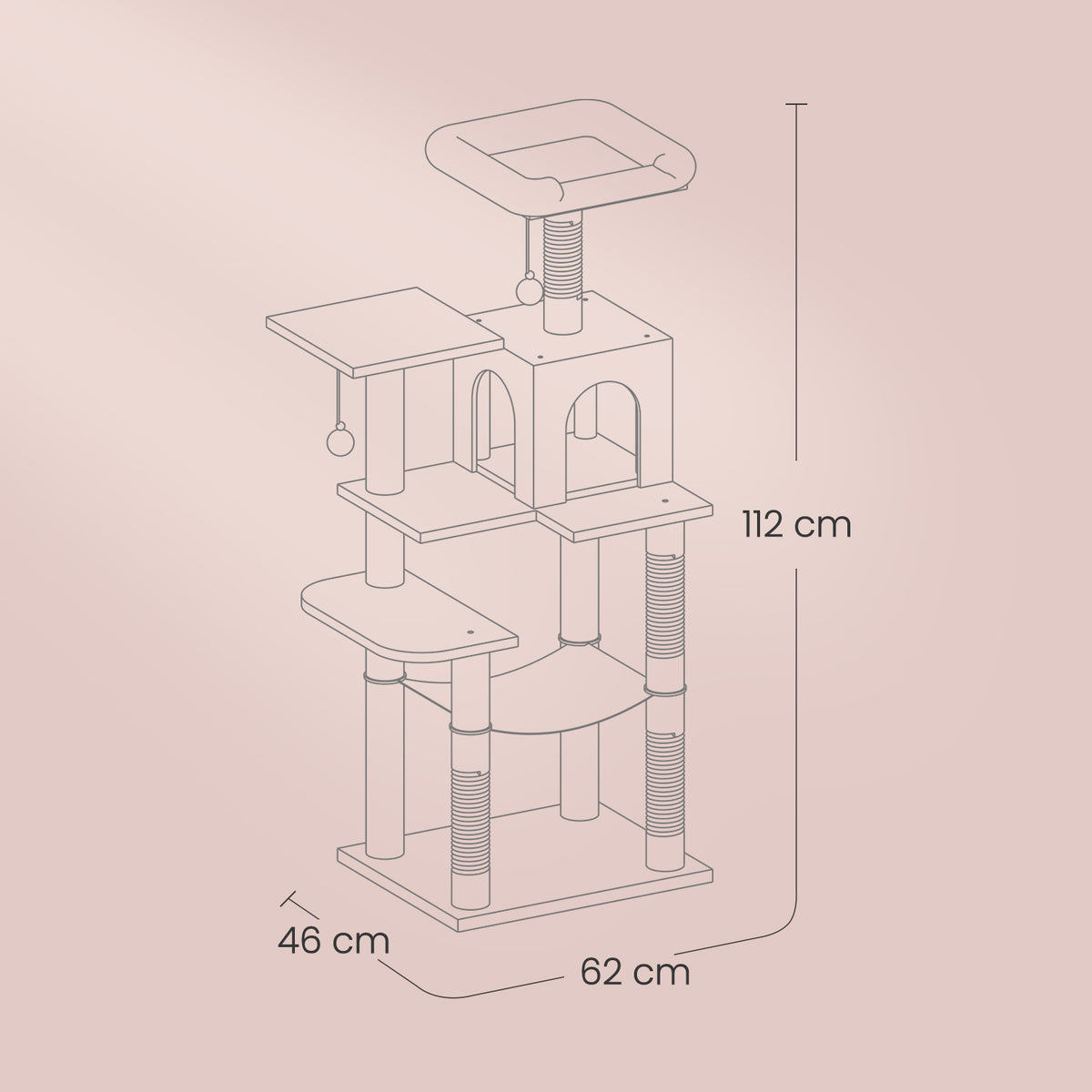 Kattenboom, meerlaagse kattenboom met grot, hangmat en 4 krabpalen 45 x 35 x 112 cm - PCTB35261M01