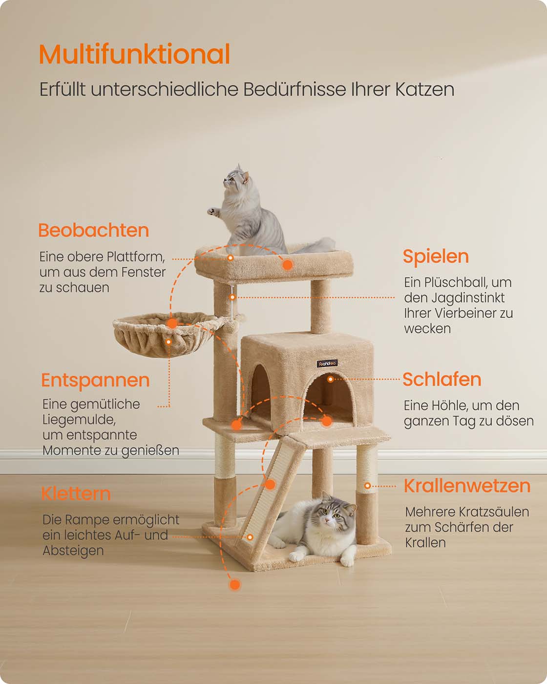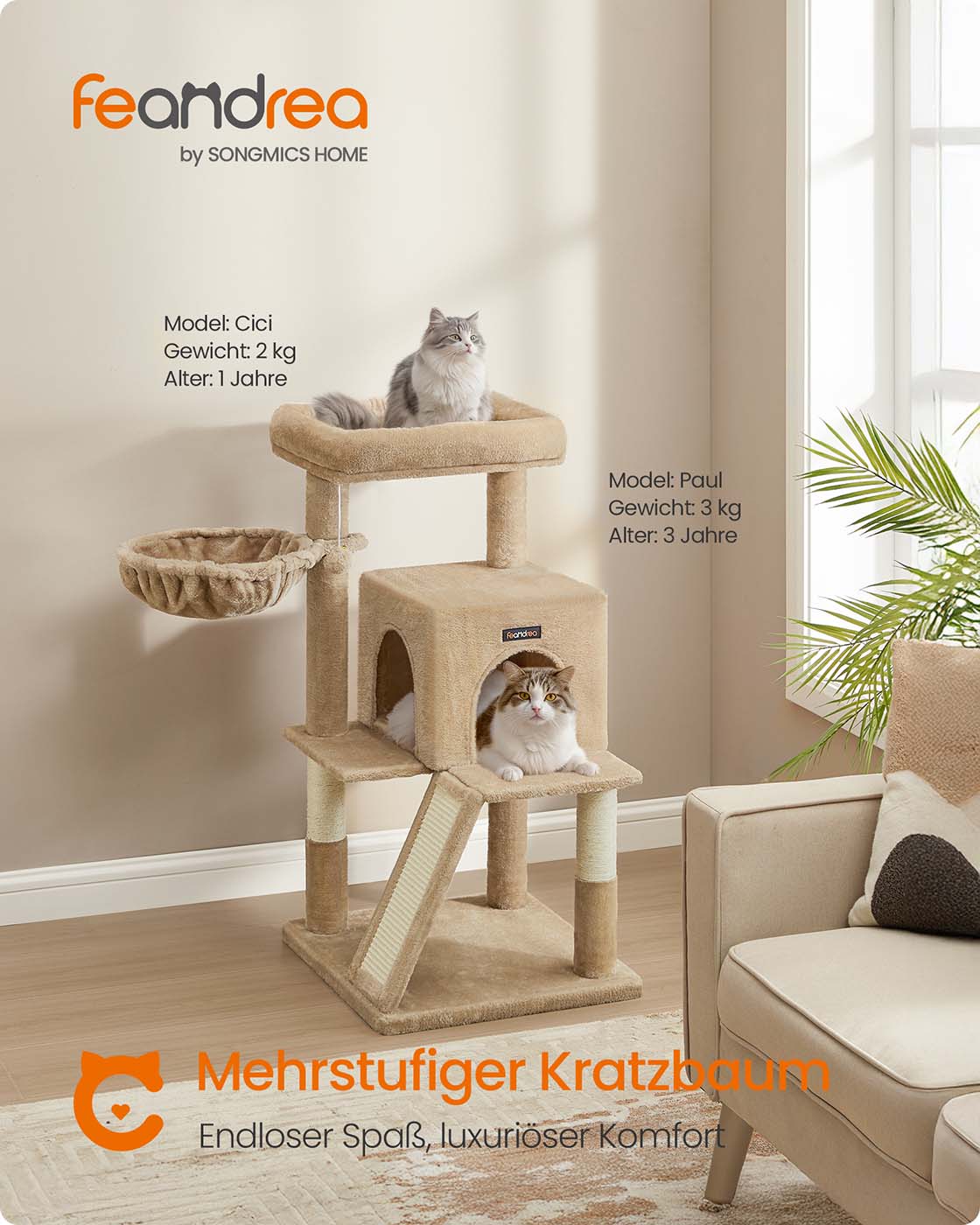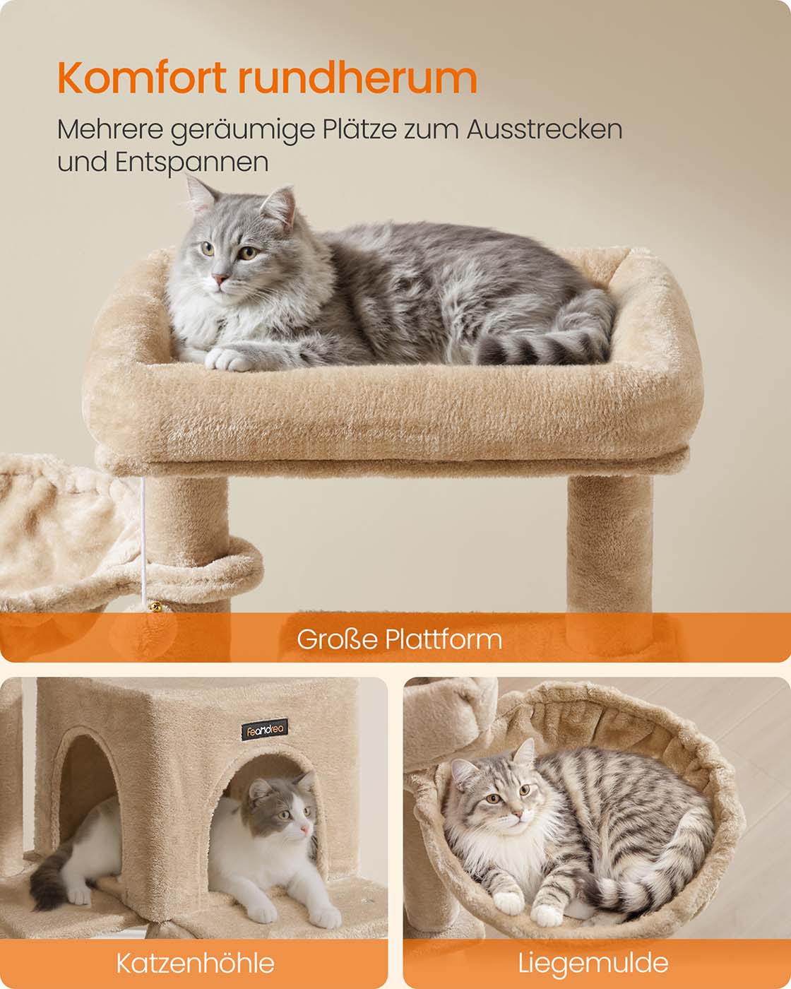 Kattenboom met groot platform kameelbruin 48 x 48 x 96 cm