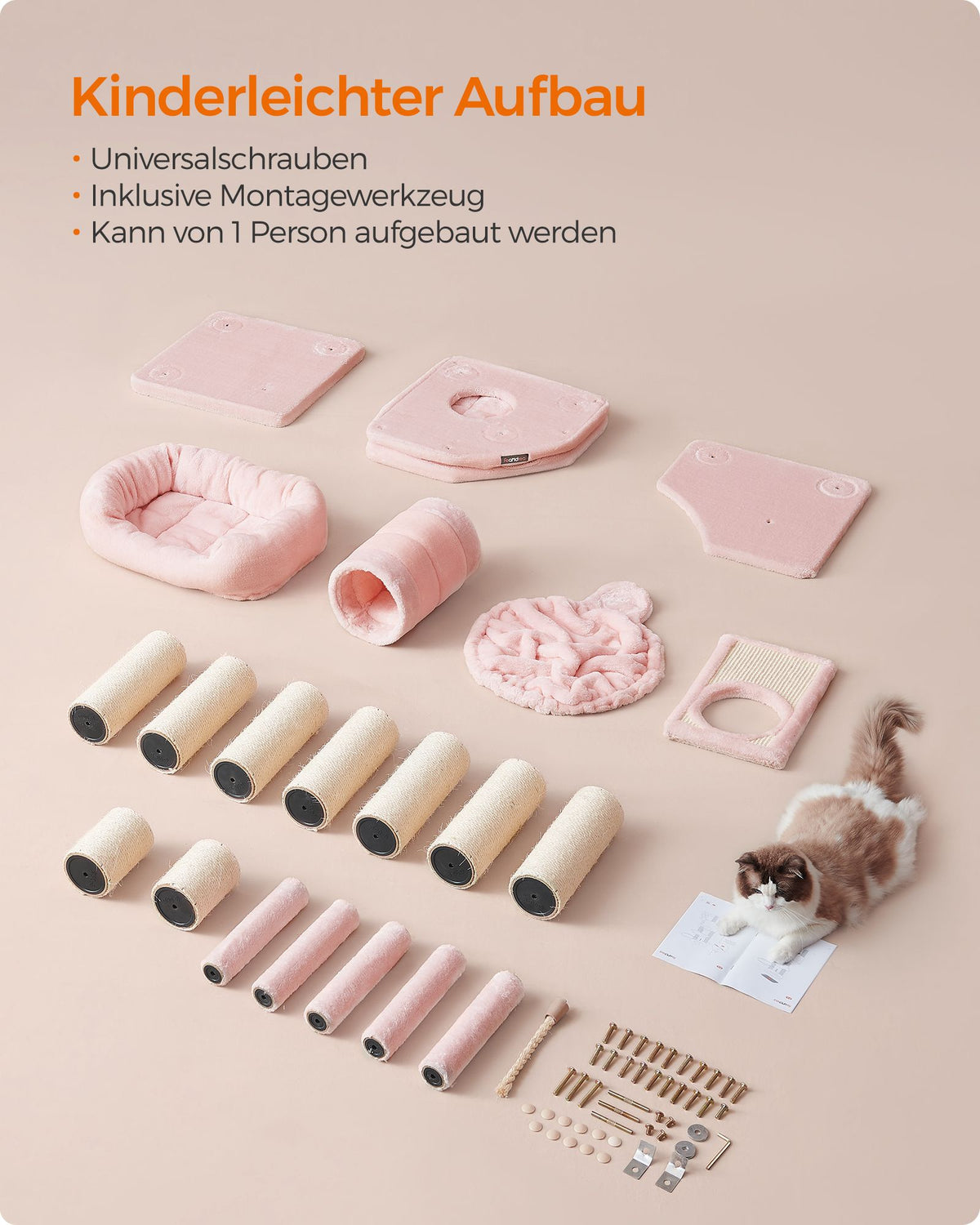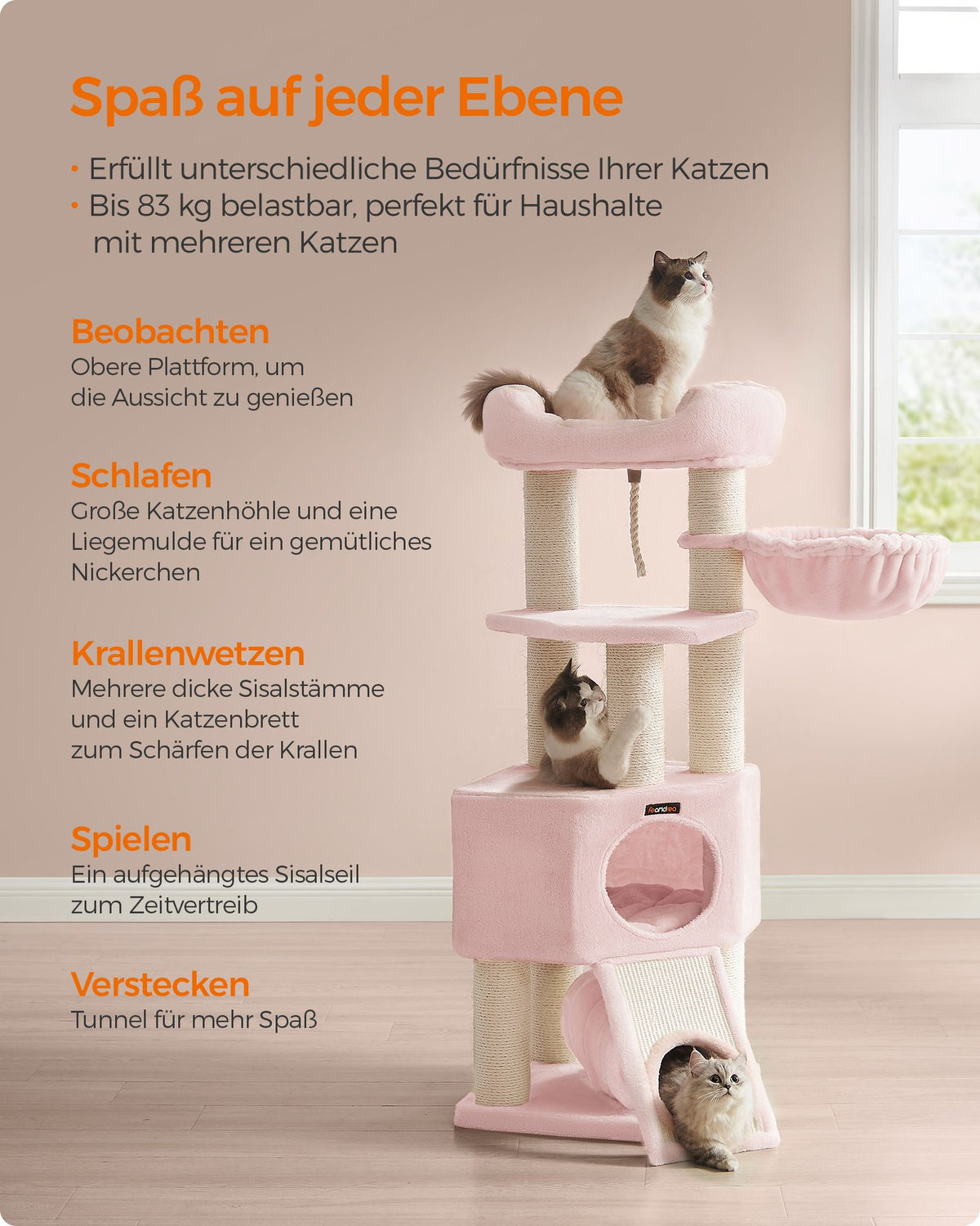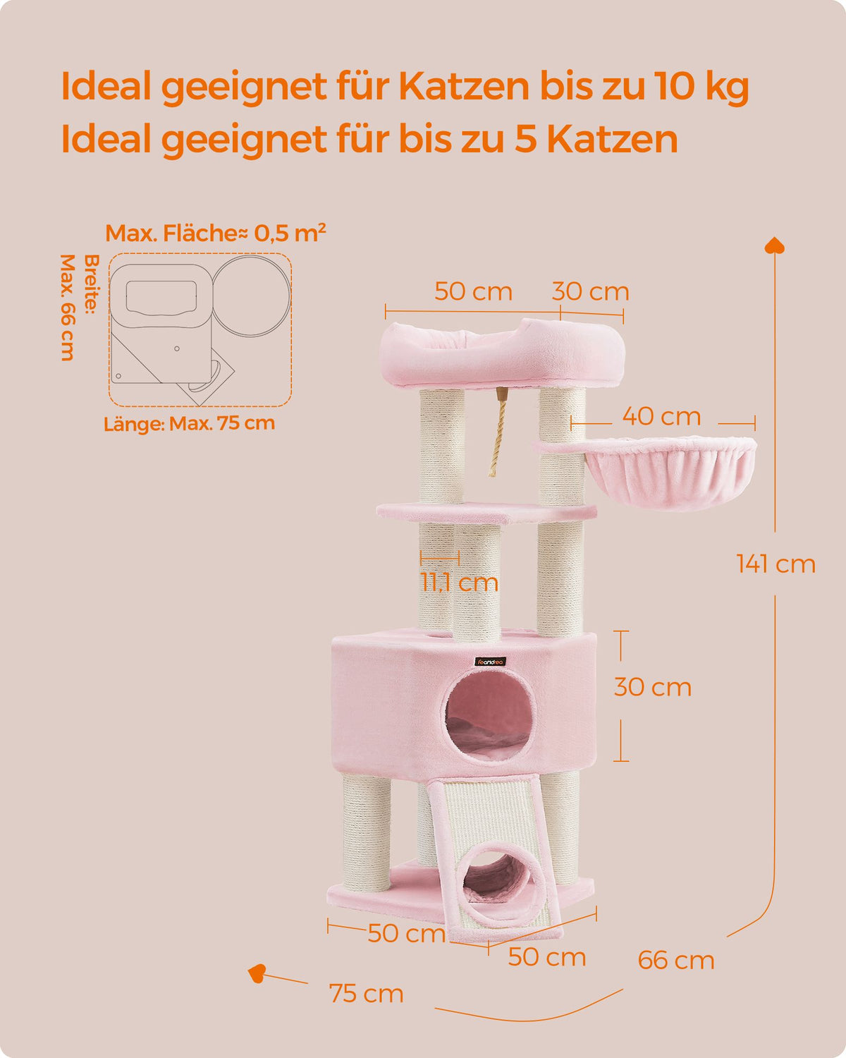 Kattenboom met holen 50 x 50 x 141 cm pastelroze