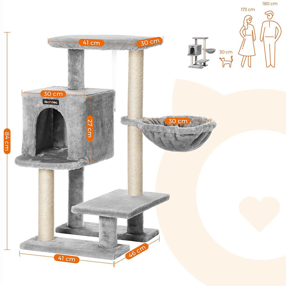 Kattenboom met knuffelhol lichtgrijs 84 cm