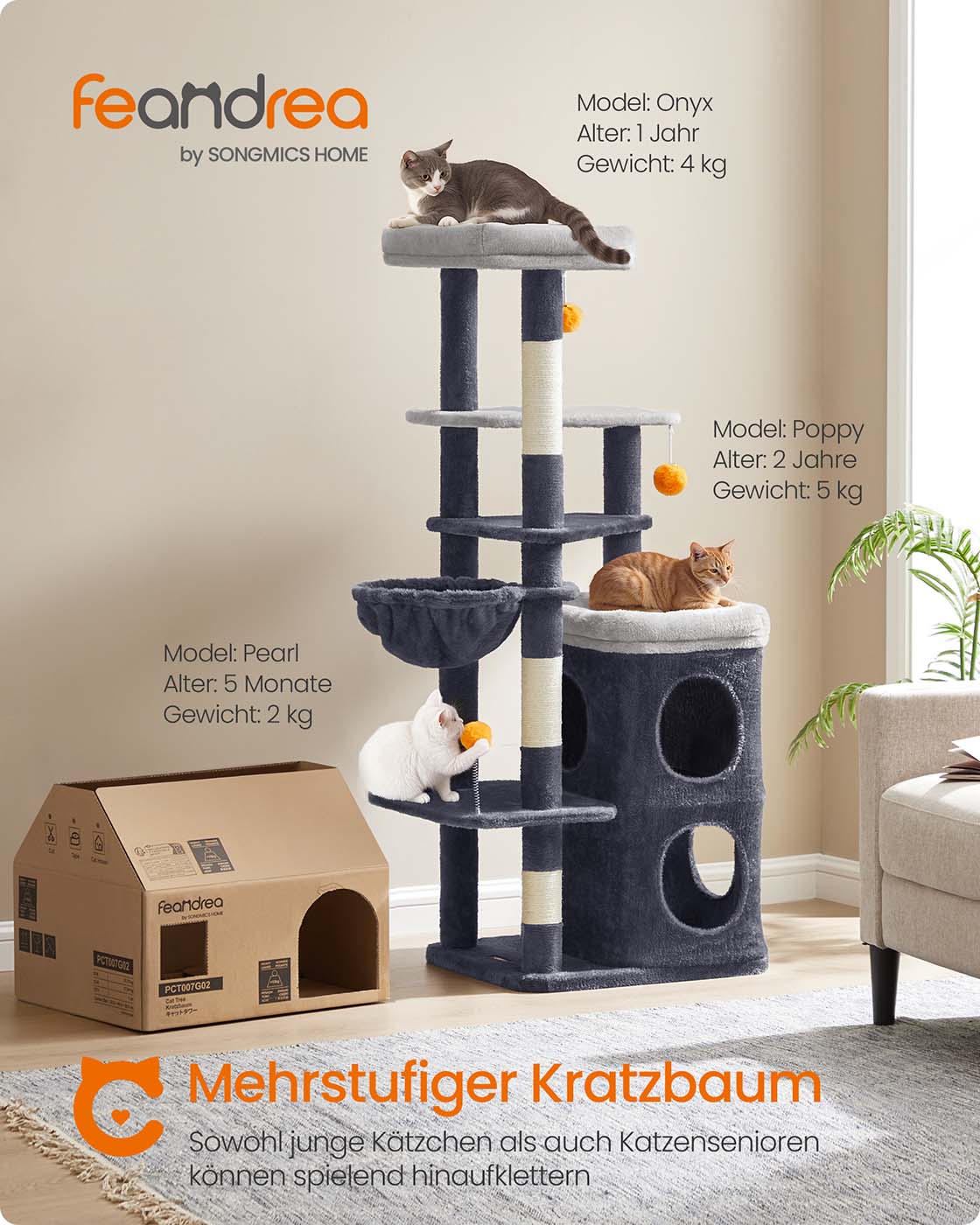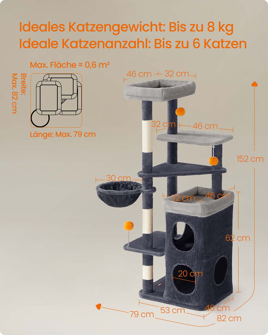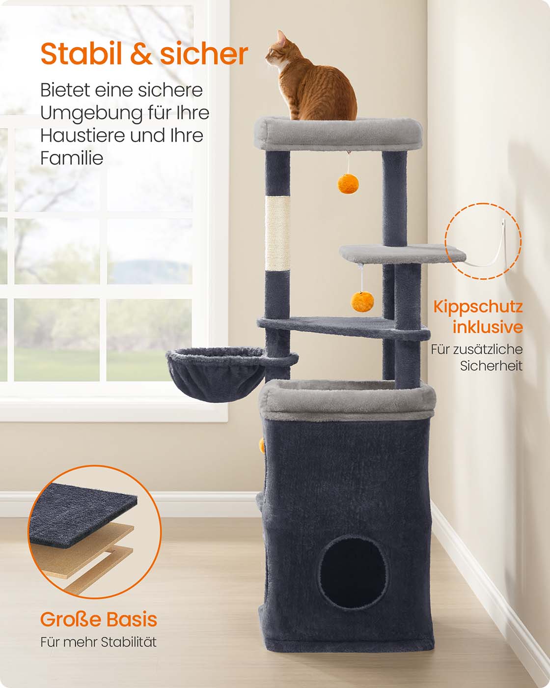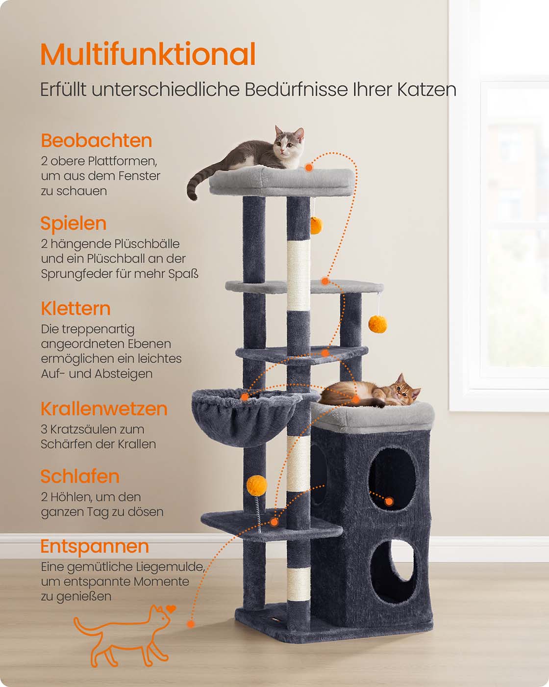 Kattenboom met meerdere niveaus, grotten en platforms voor katten 152 cm - PCT007G02