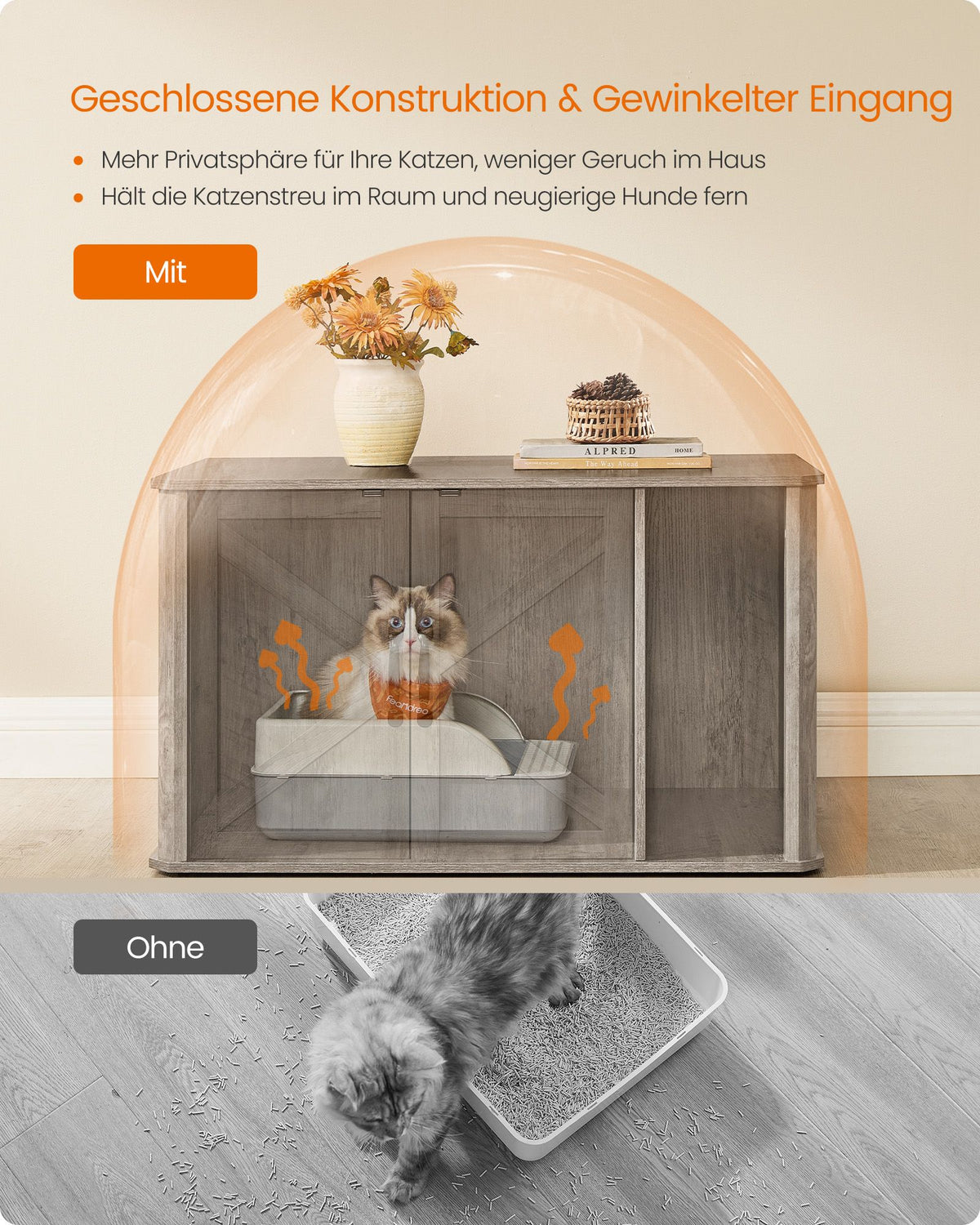Kattenhuis met dubbele deur en handgrepen greige gevlekt 5 x 50 cm
