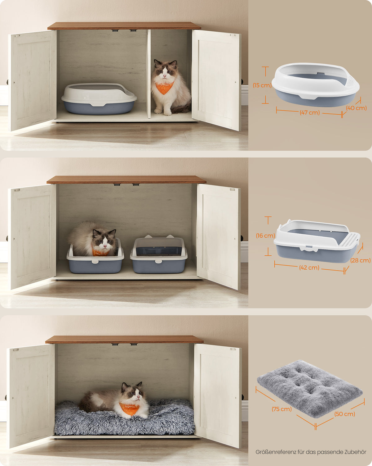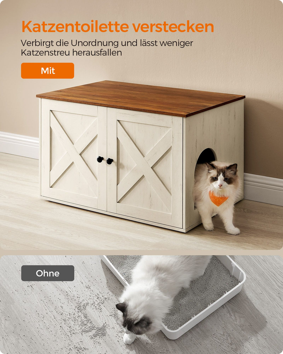 Kattenhuis met uitneembare tussenwand 80 x 53 x 50 cm