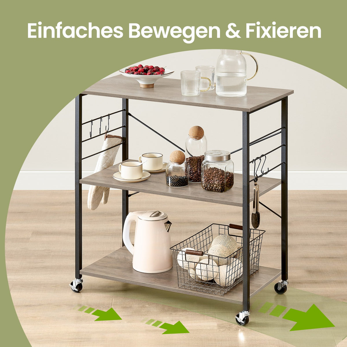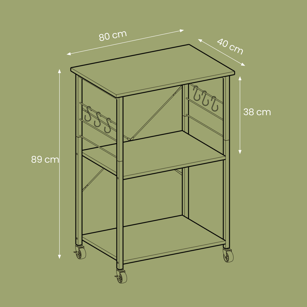 Keukenplank 3 niveaus op wielen greige gevlekt-zwart 40 x 80 x 89 cm - KKSB35067K02