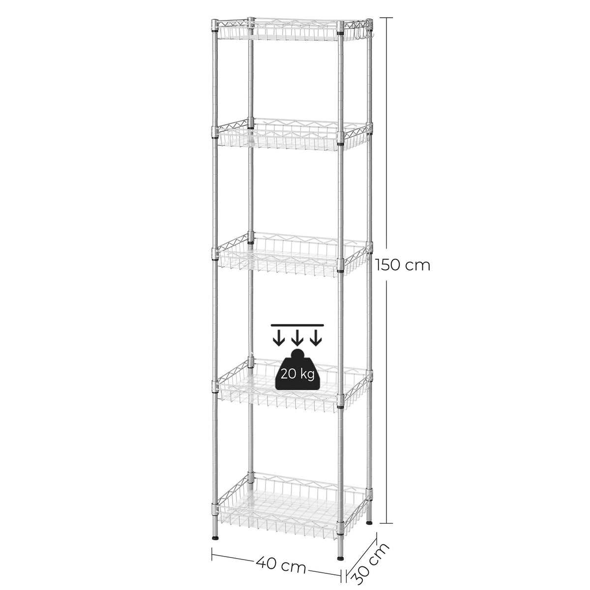Keukenplank met 5 verstelbare planken 40 x 30 x 150 cm