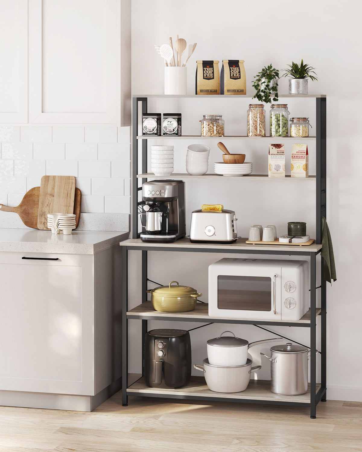 Keukenplank met 6 planken, 40 x 100 x 167 cm, grijs-zwart