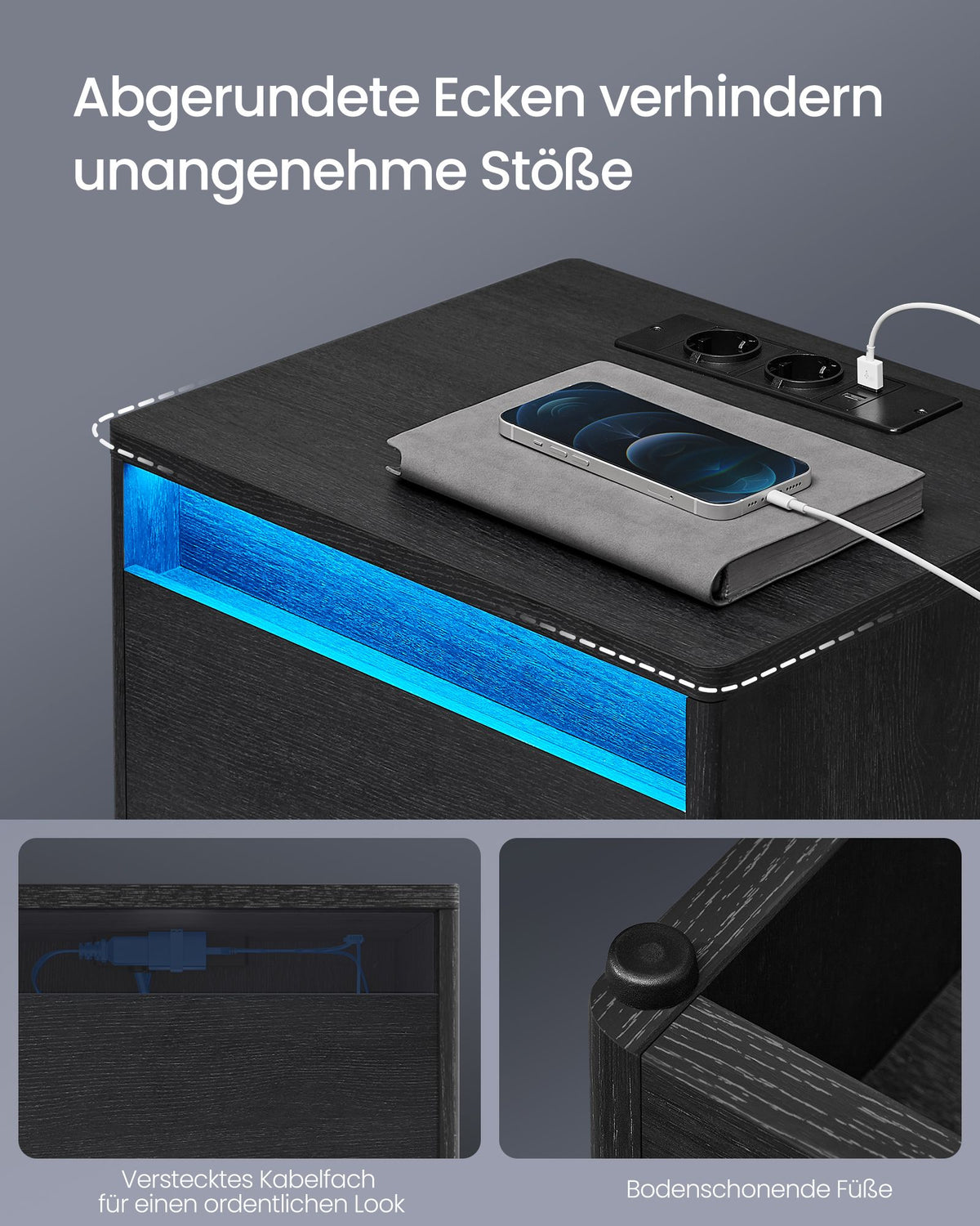 Nachtkastje met LED-verlichting modern essenzwart 35 x 40 x 55 cm