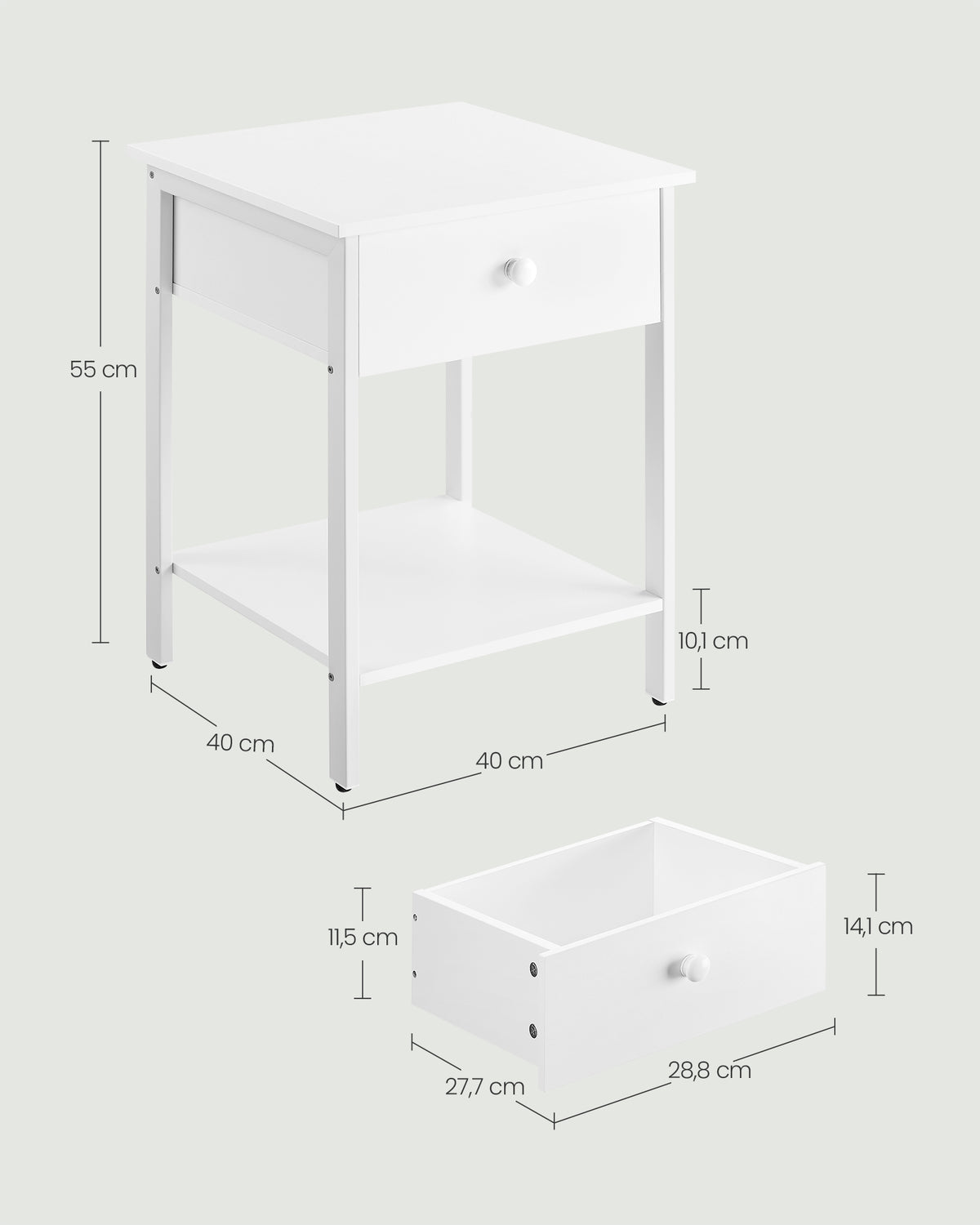 Nachtkastje met stalen frame en eenvoudige montage 40 x 40 x 55 cm