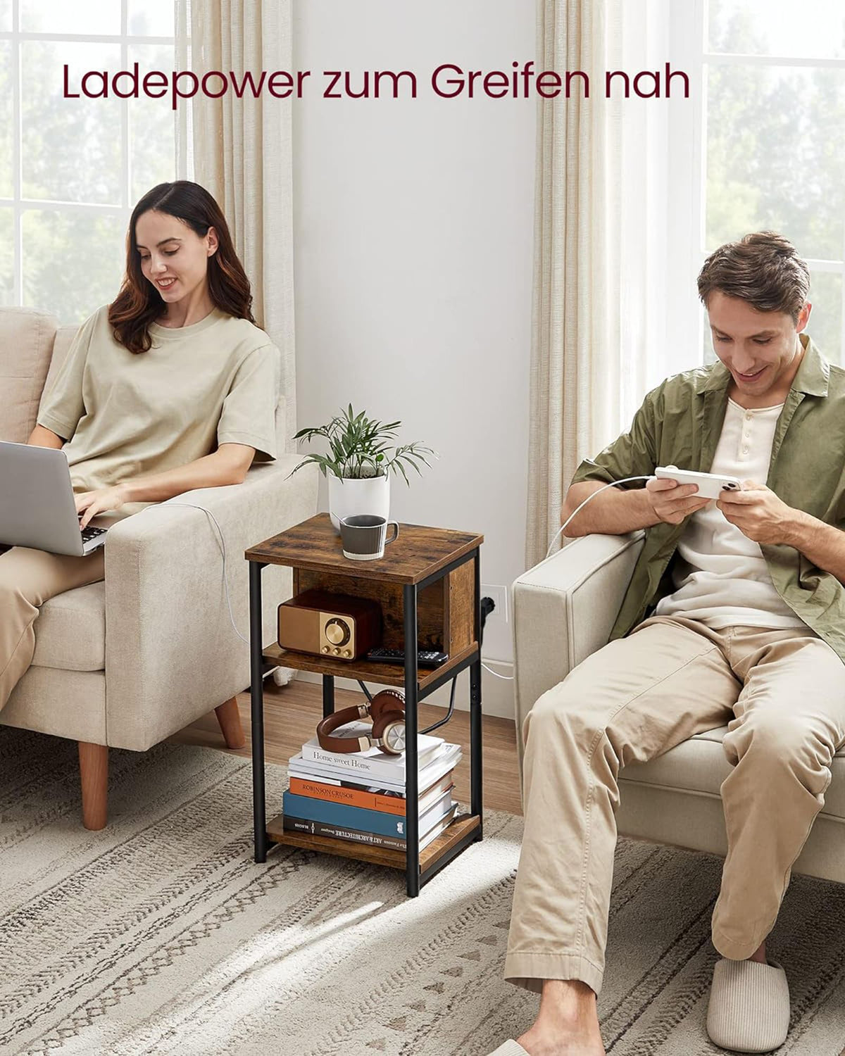 Nachtkastje met stopcontacten, smal, vintage bruin-zwart 30 x 34 x 58 cm