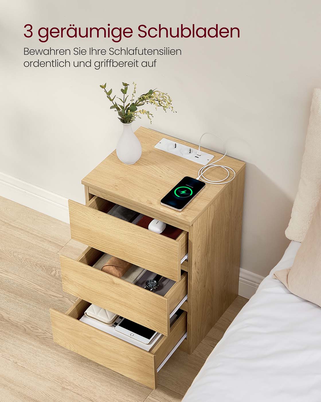 Nachtkastje set van 2 met lades en oplaadstation strogeel 35 x 40 x 59 cm
