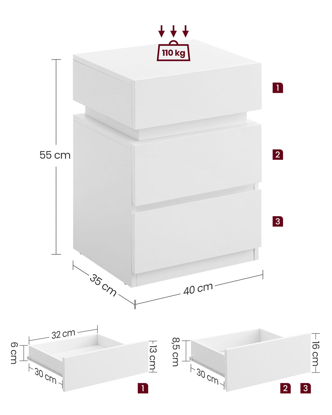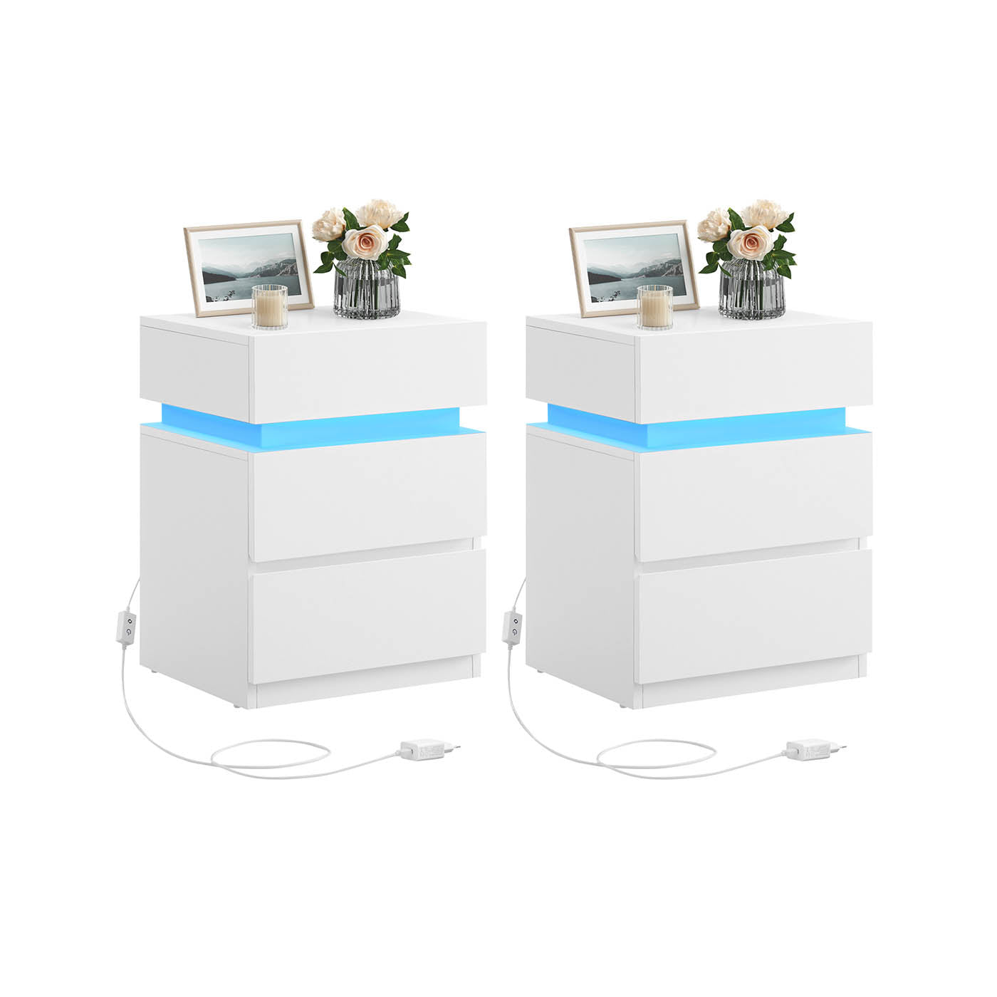 Nachtkastje set van 2 met LED-verlichting en 3 lades wit 35 x 40 x 55 cm