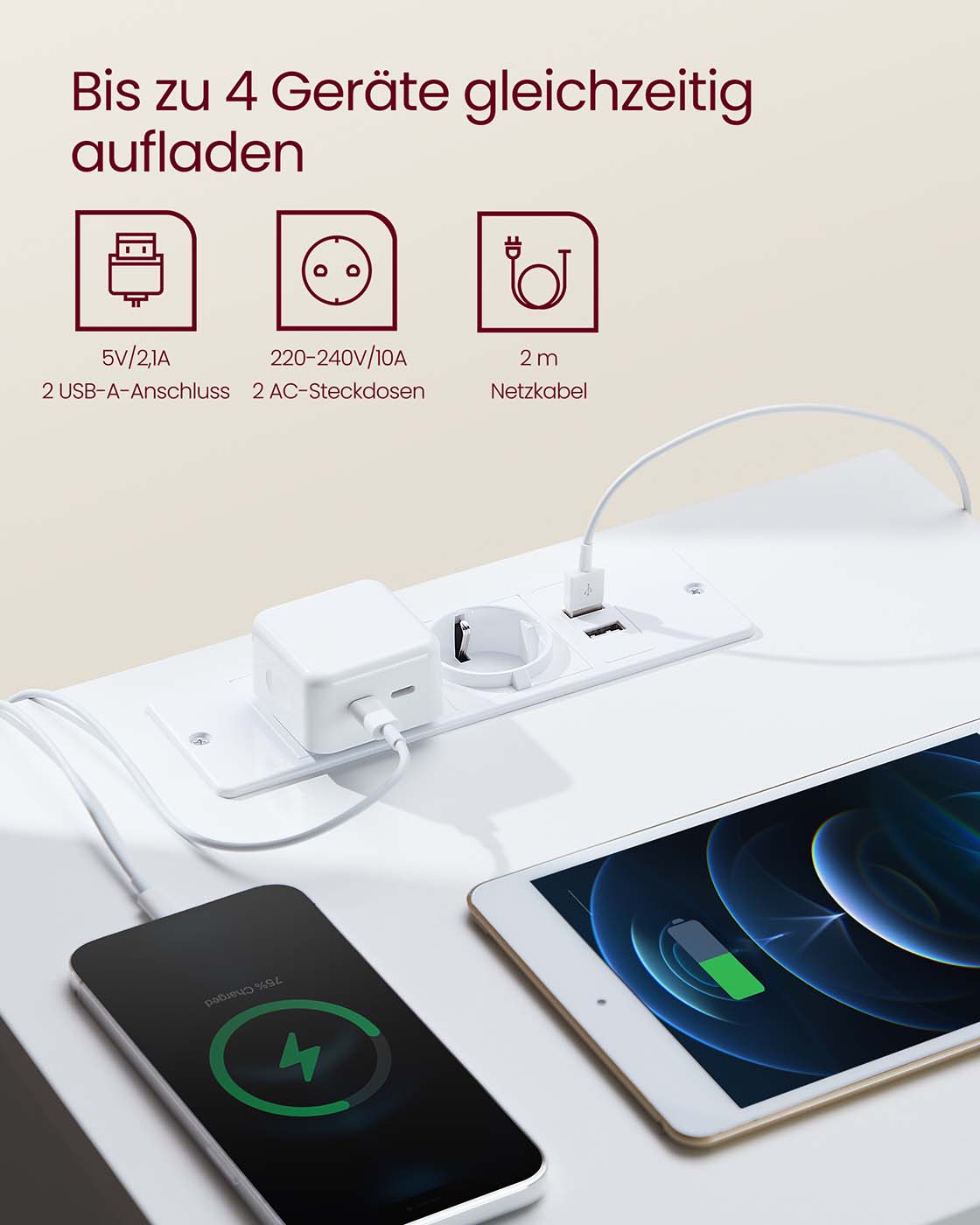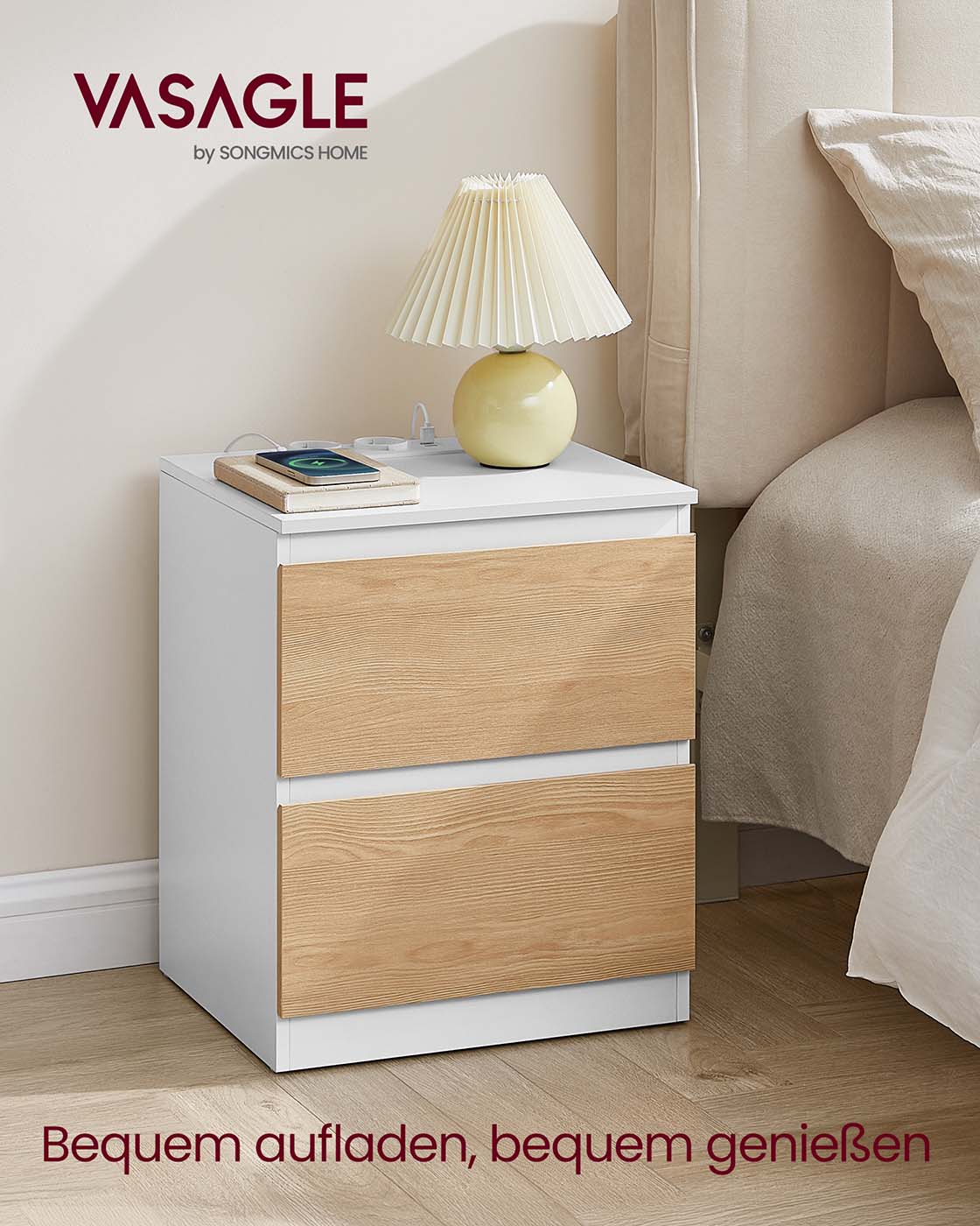 Nachtkastje set van 2 met stopcontacten en lades, amandelgeel 35 x 40 x 49 cm