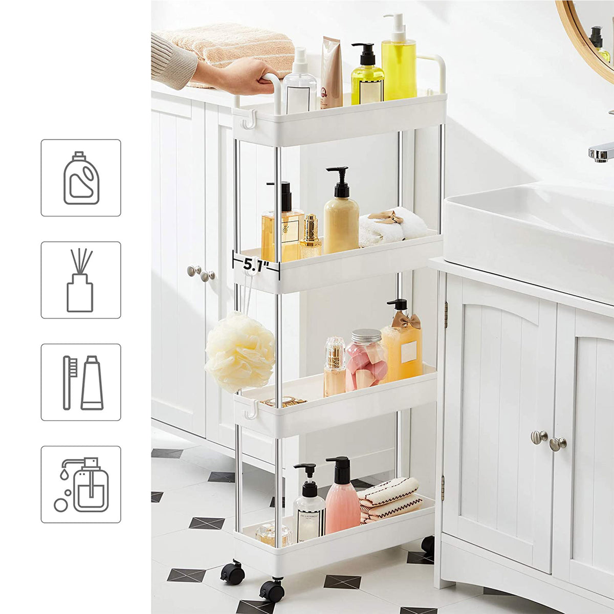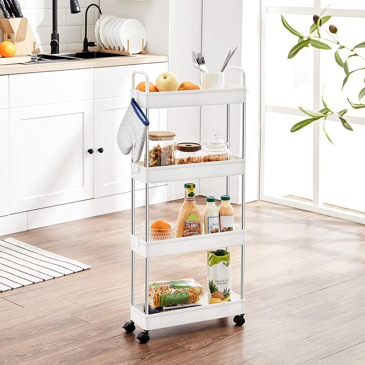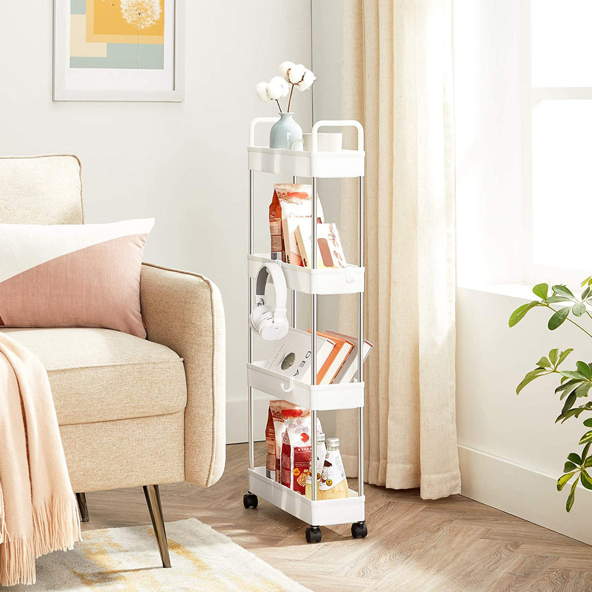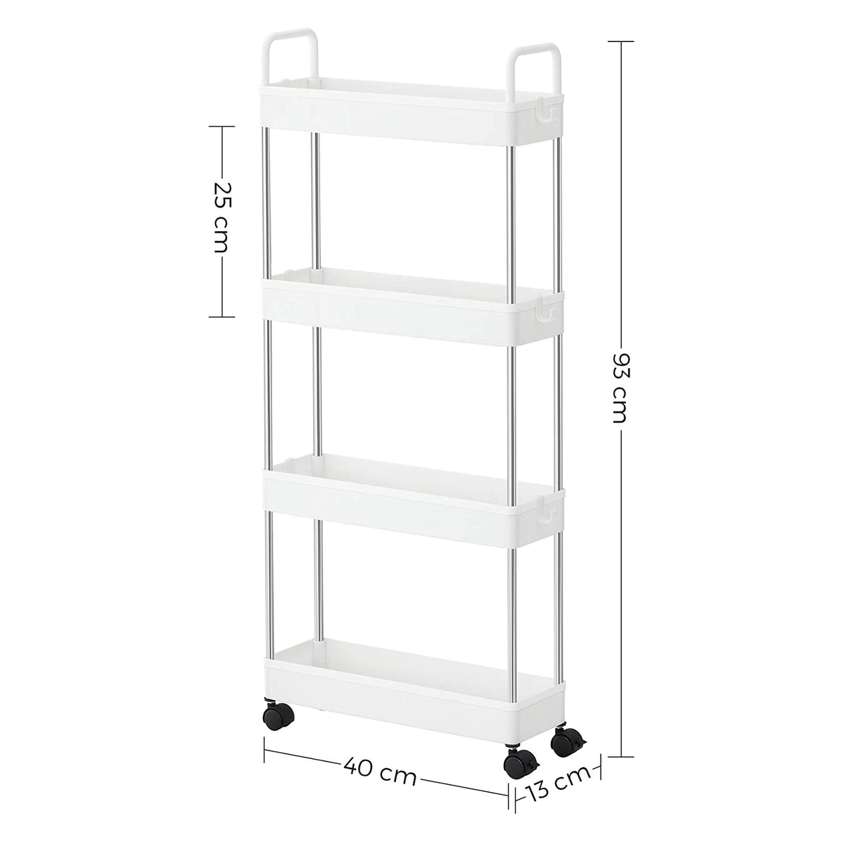 Nisplank op wielen met 4 niveaus wit 40 x 13 x 93 cm