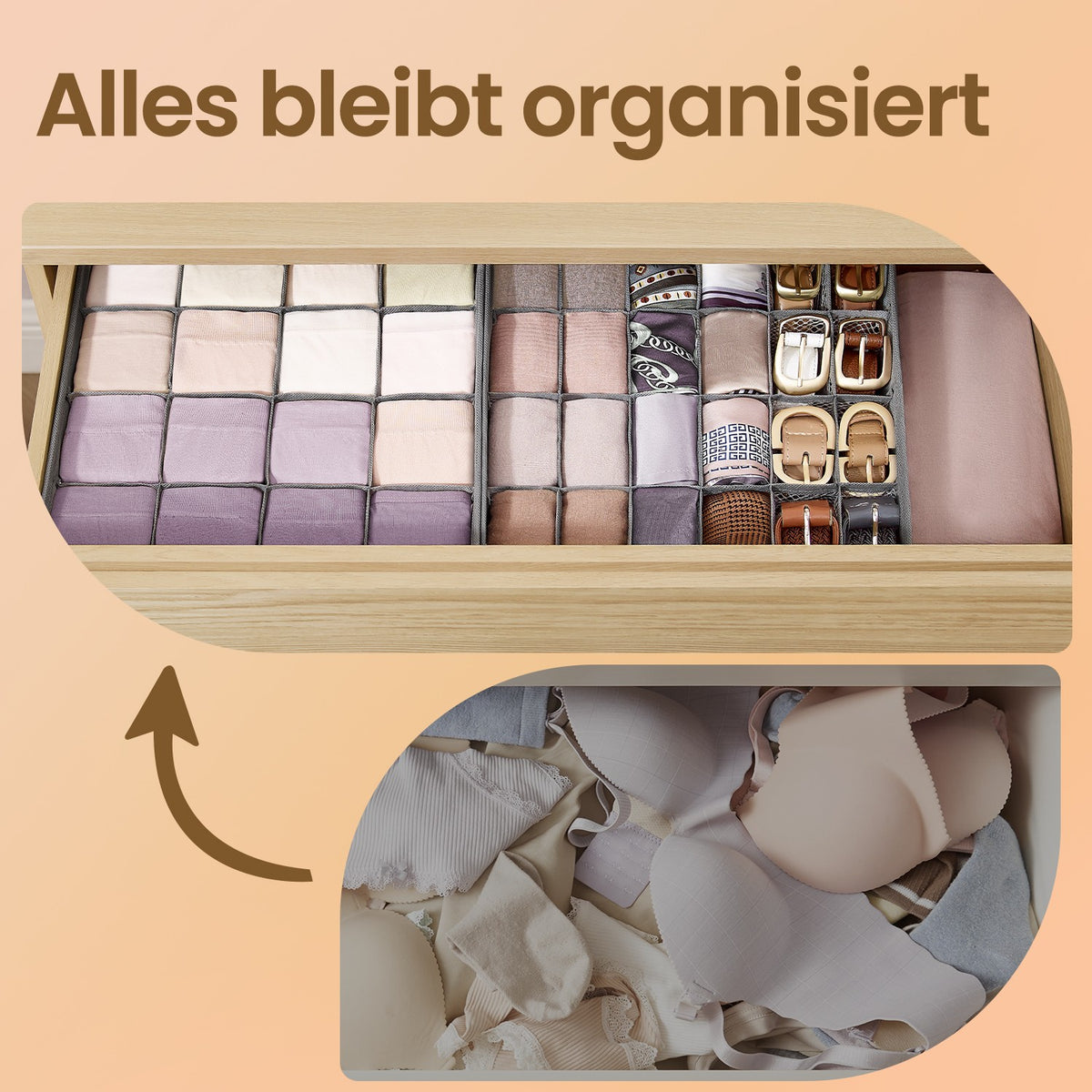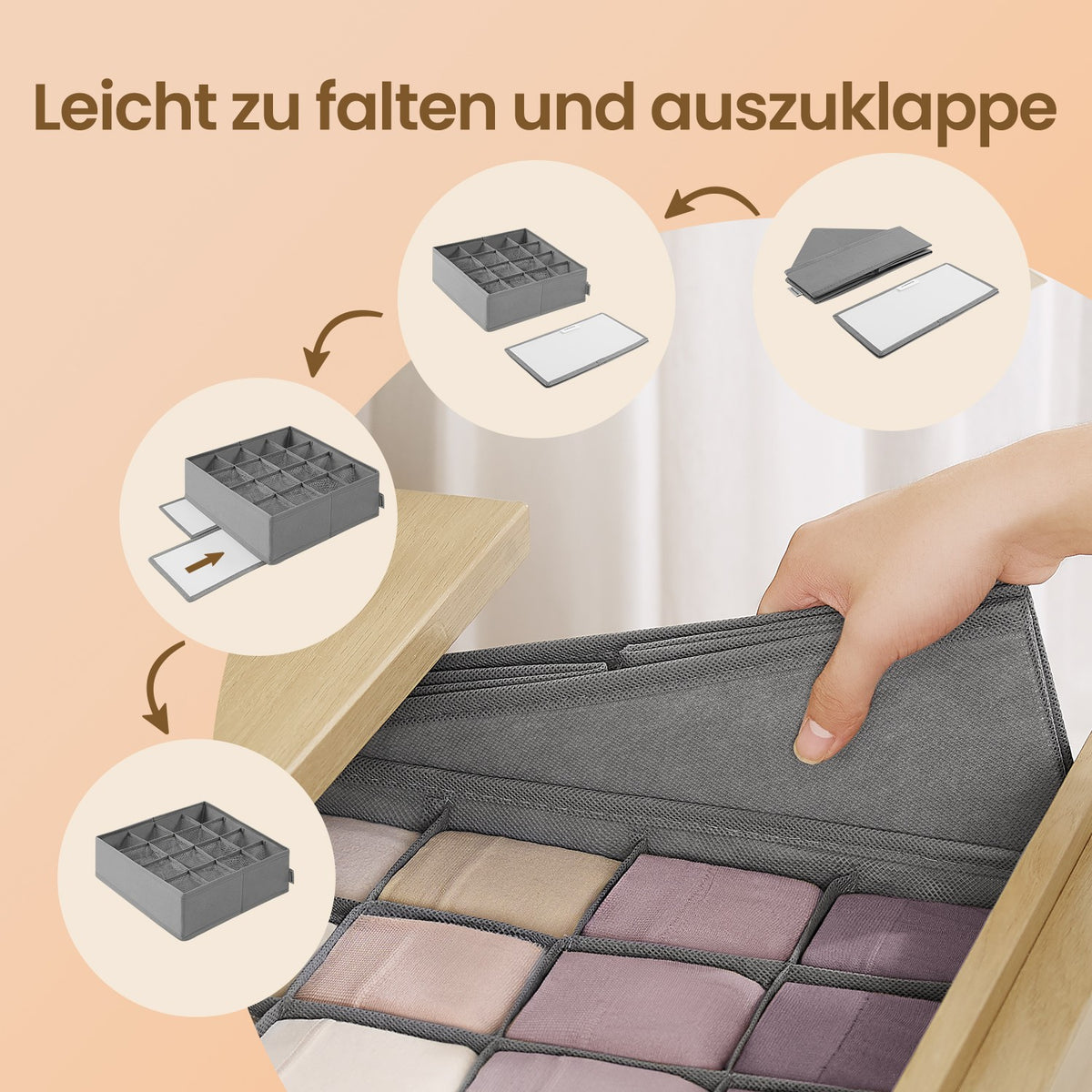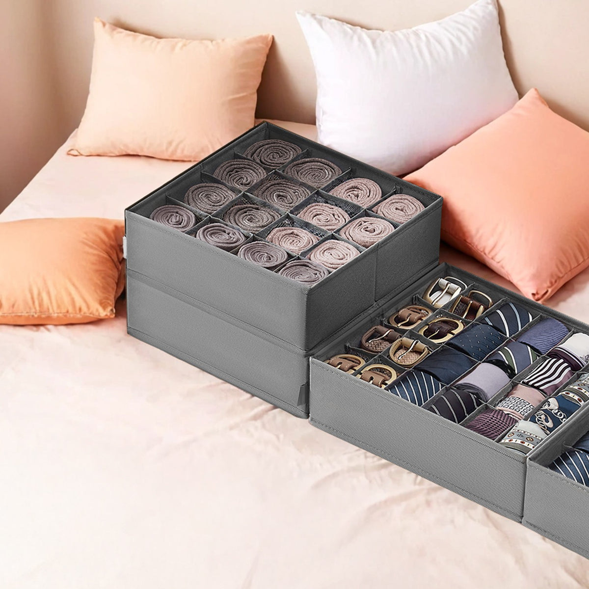 Ondergoed organizer set van 6 met 120 vakken, duifgrijs 30 x 30 x 10 cm - RUSB35011G02
