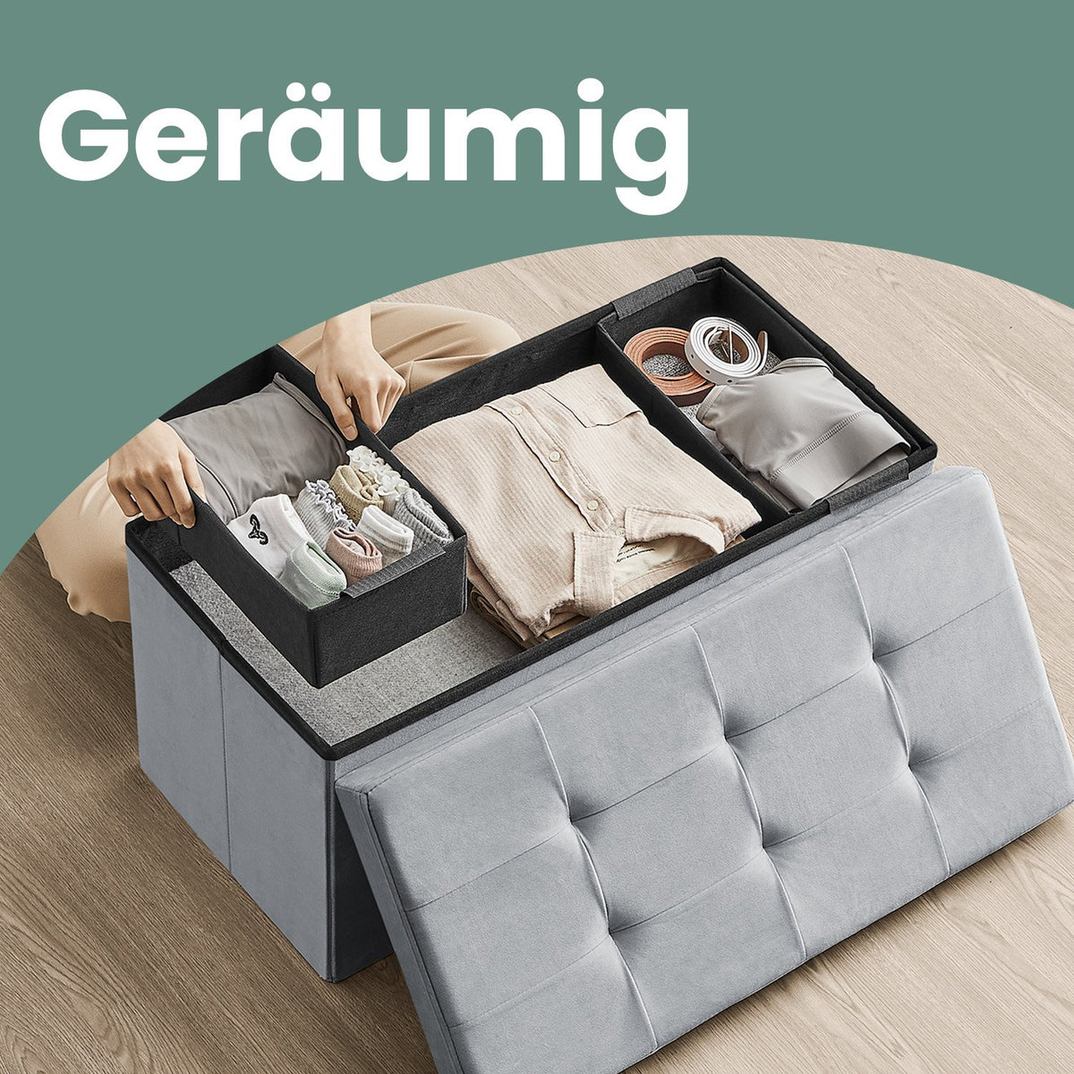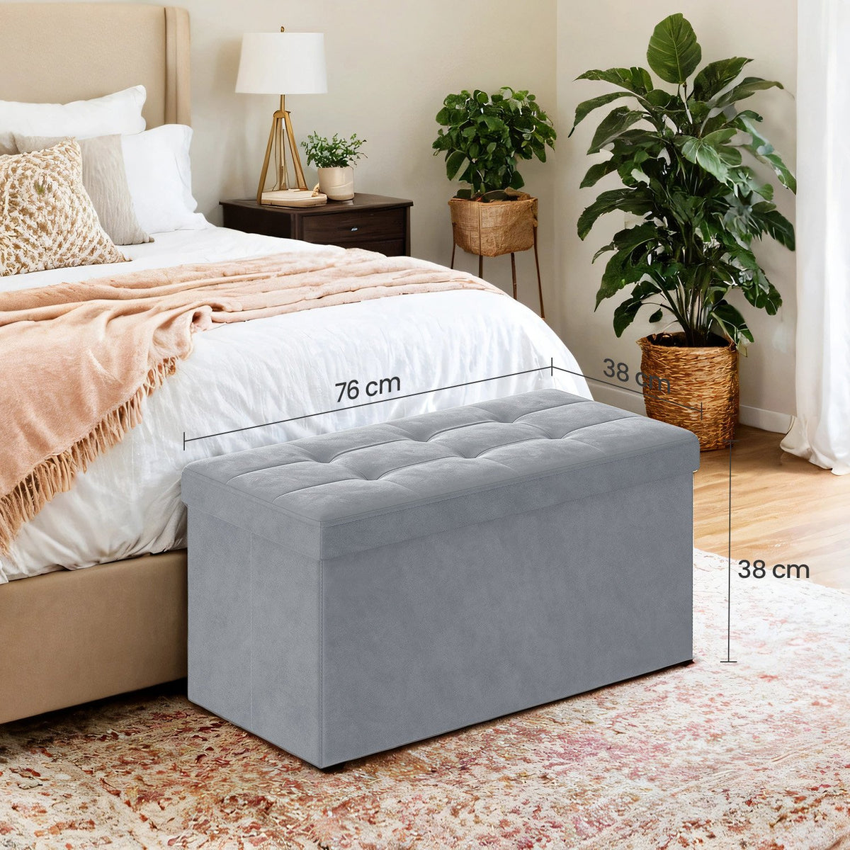 Opbergbank van fluweel, 38 x 76 x 38 cm, opvouwbare opbergkist - LSFB35247G02