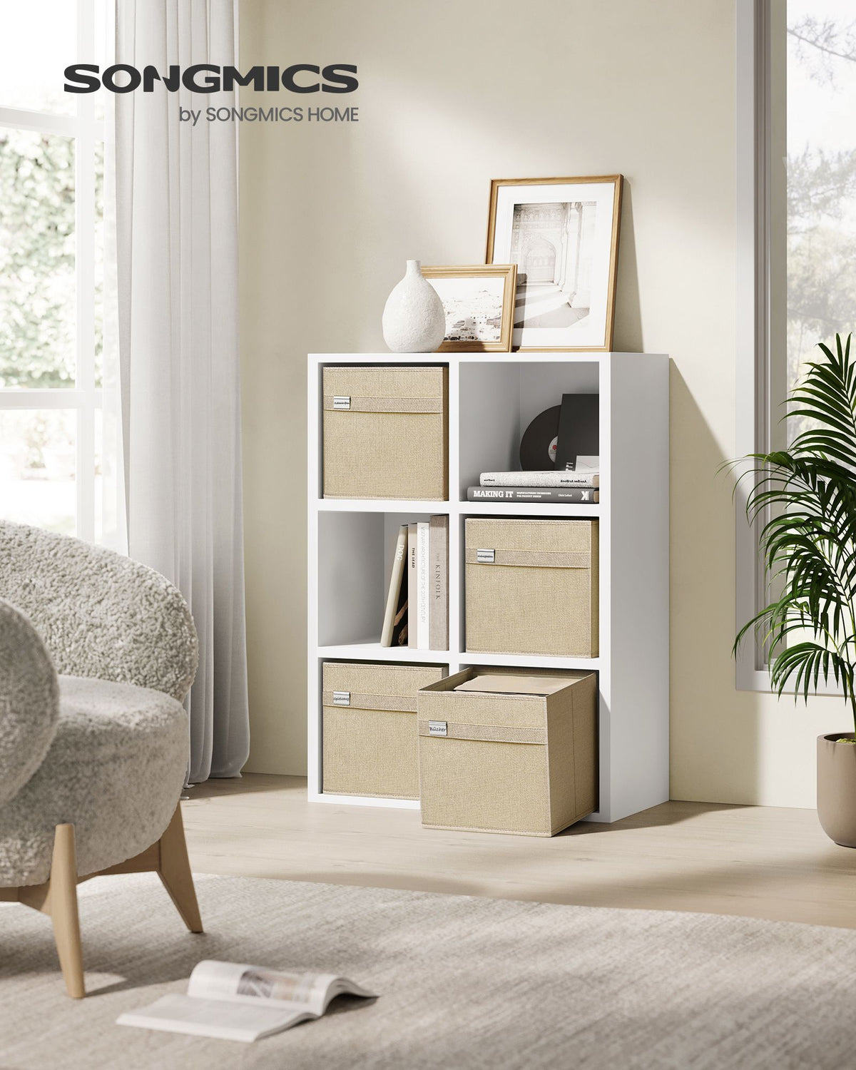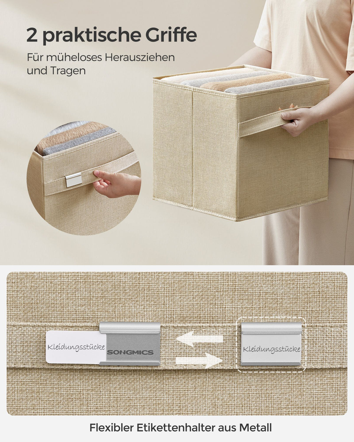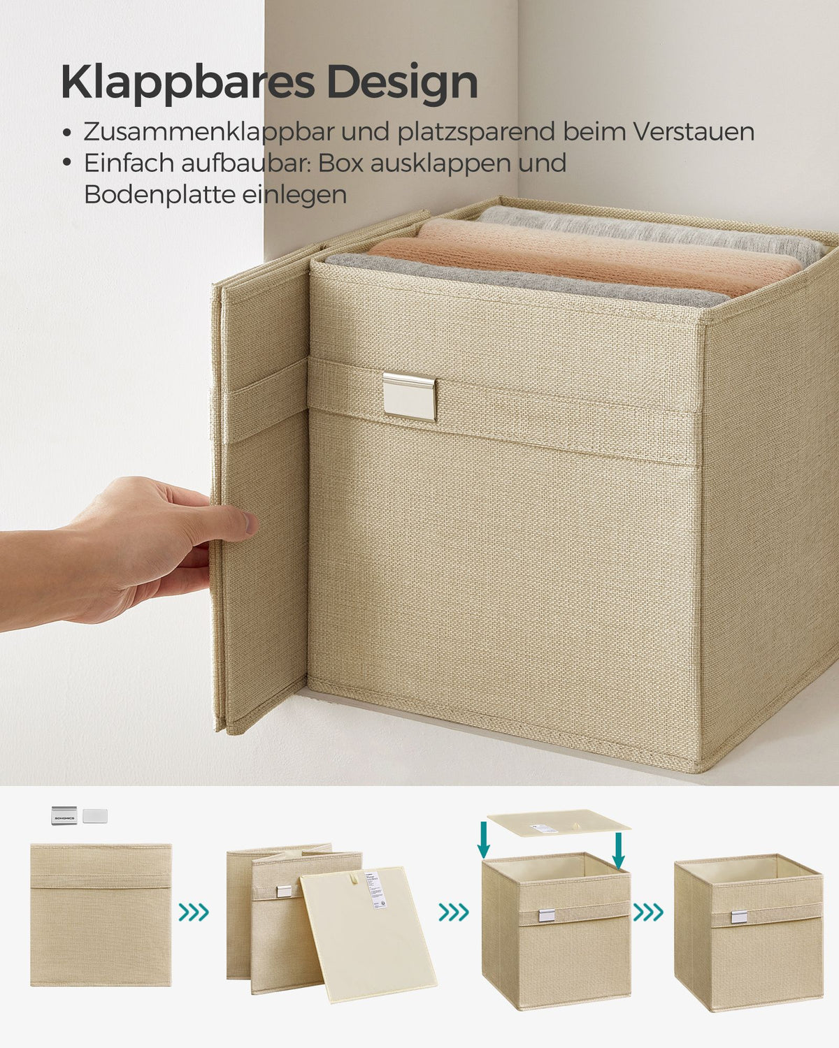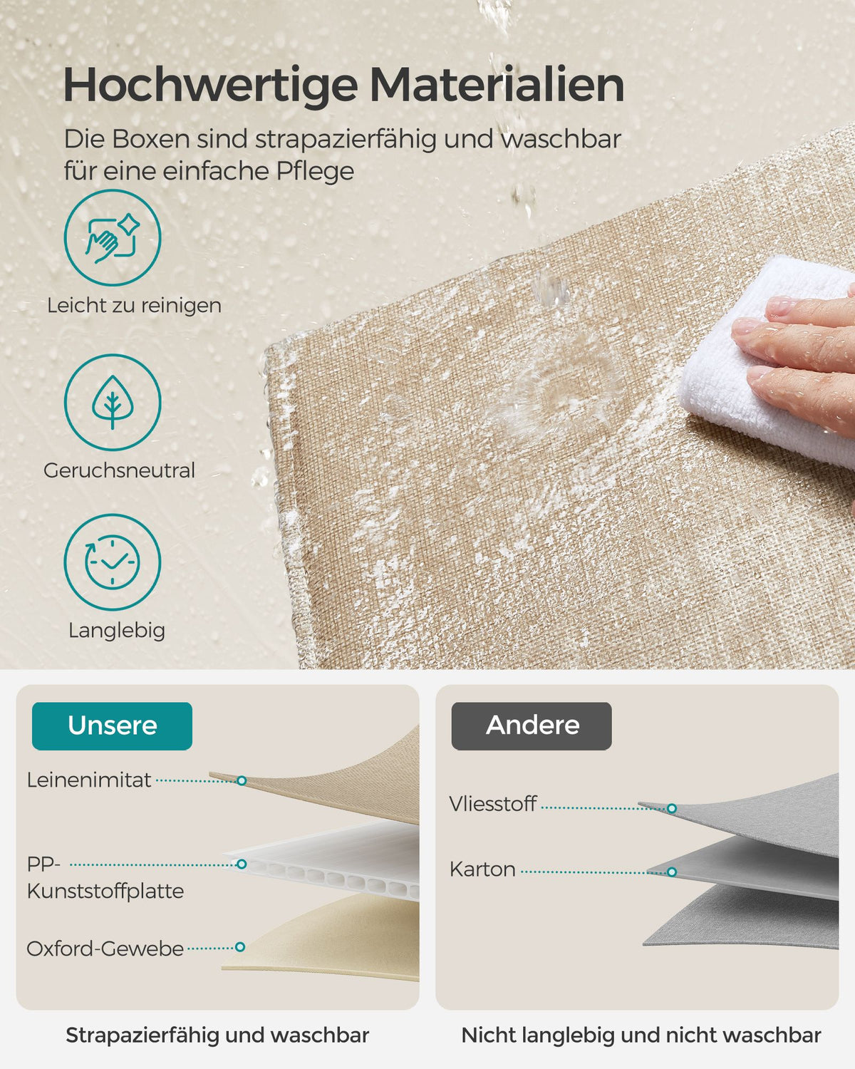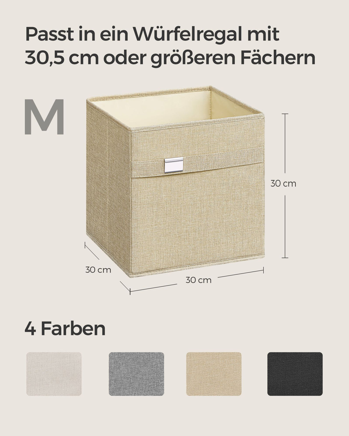 Opbergboxset van 4 van Oxford-stof en imitatielinnen, zandbeige 33 x 33 x 33 cm