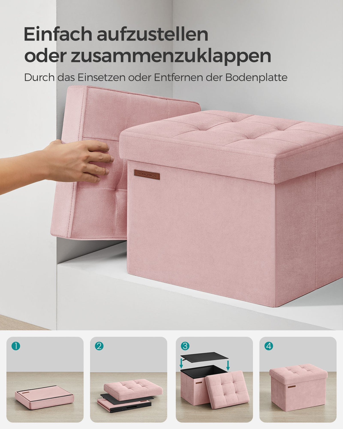 Opbergdoos met deksel, draagvermogen tot 130 kg, pastelroze 31 x 41 x 31 cm