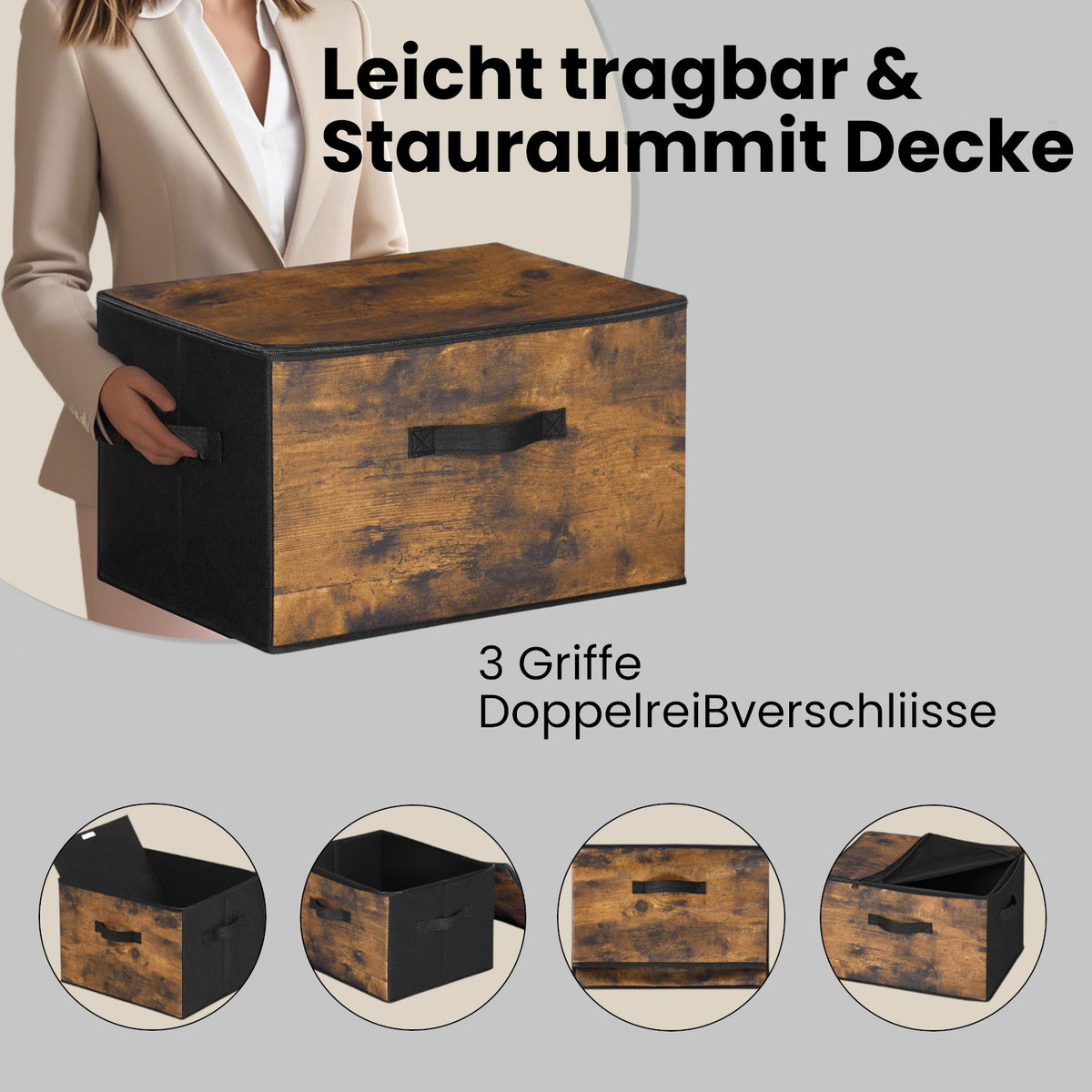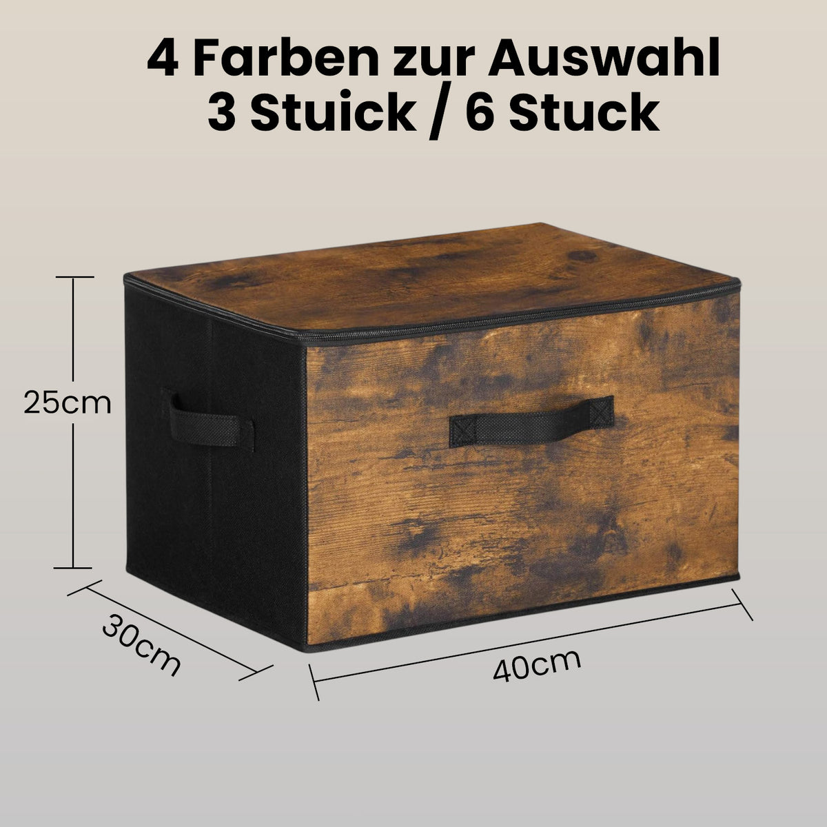 Opbergdoos met deksel, set van 3, opvouwbare stoffen doos met handgrepen 40 x 30 x 25 cm