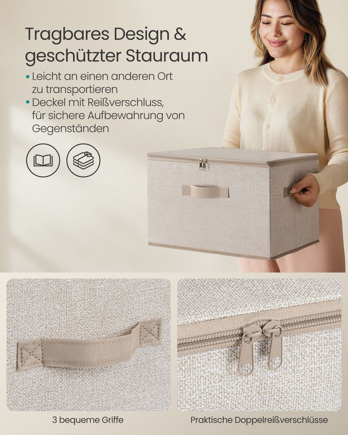Opbergdoos met deksel, set van 3, zandbeige 40 x 30 x 25 cm