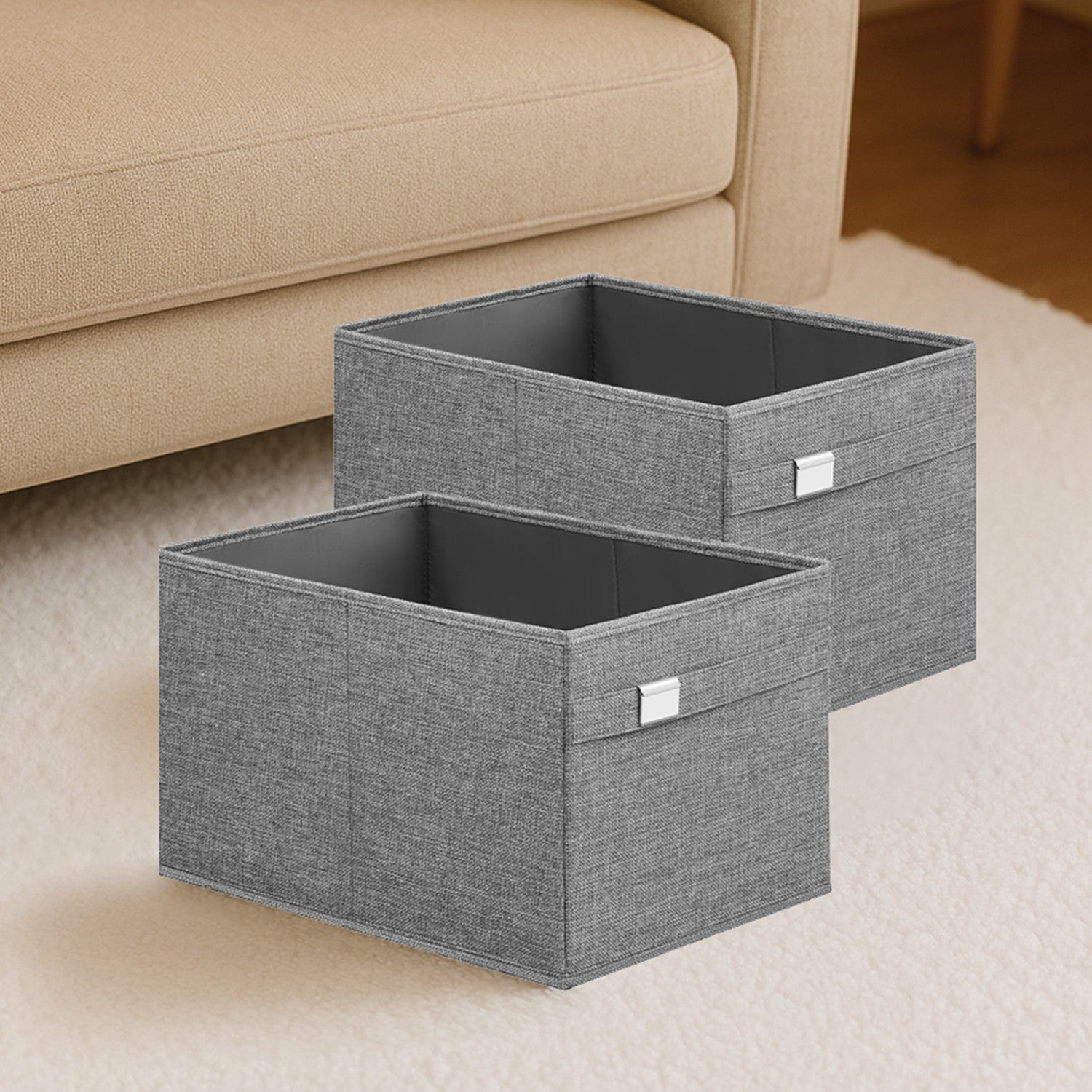 Opbergdoos set van 2 met handgrepen duifgrijs 40 x 30 x 25 cm - ROBB35240G02