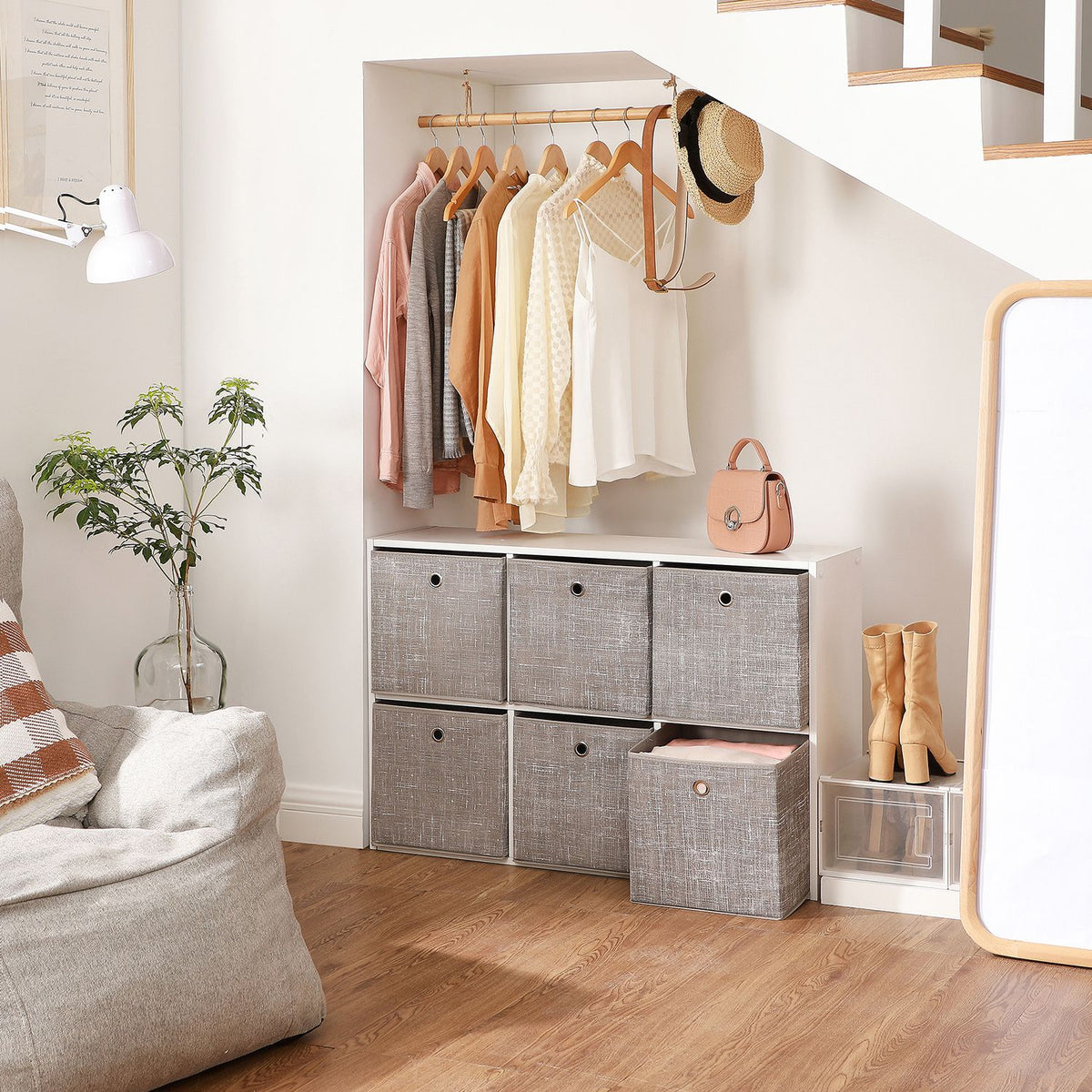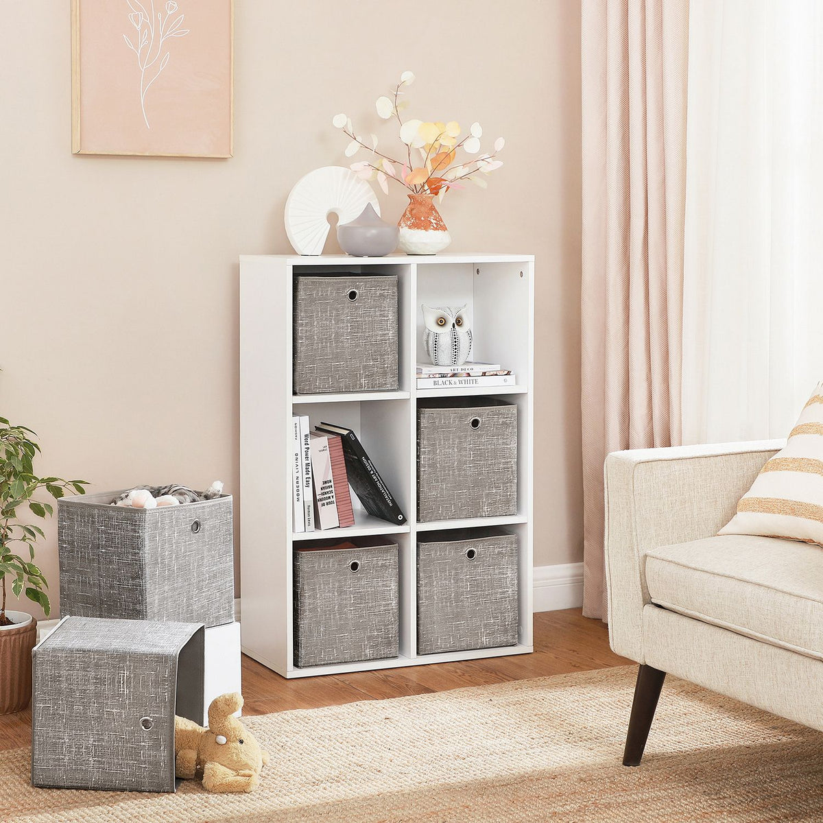 Opbergdoos set van 6, gevlekt taupe 30 x 30 x 30 cm