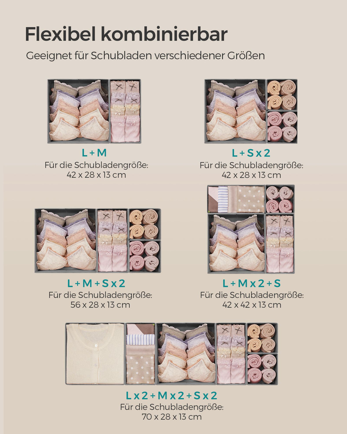 Opbergdoos voor lade, set van 12, duifgrijs 28 x 28 x 13 cm