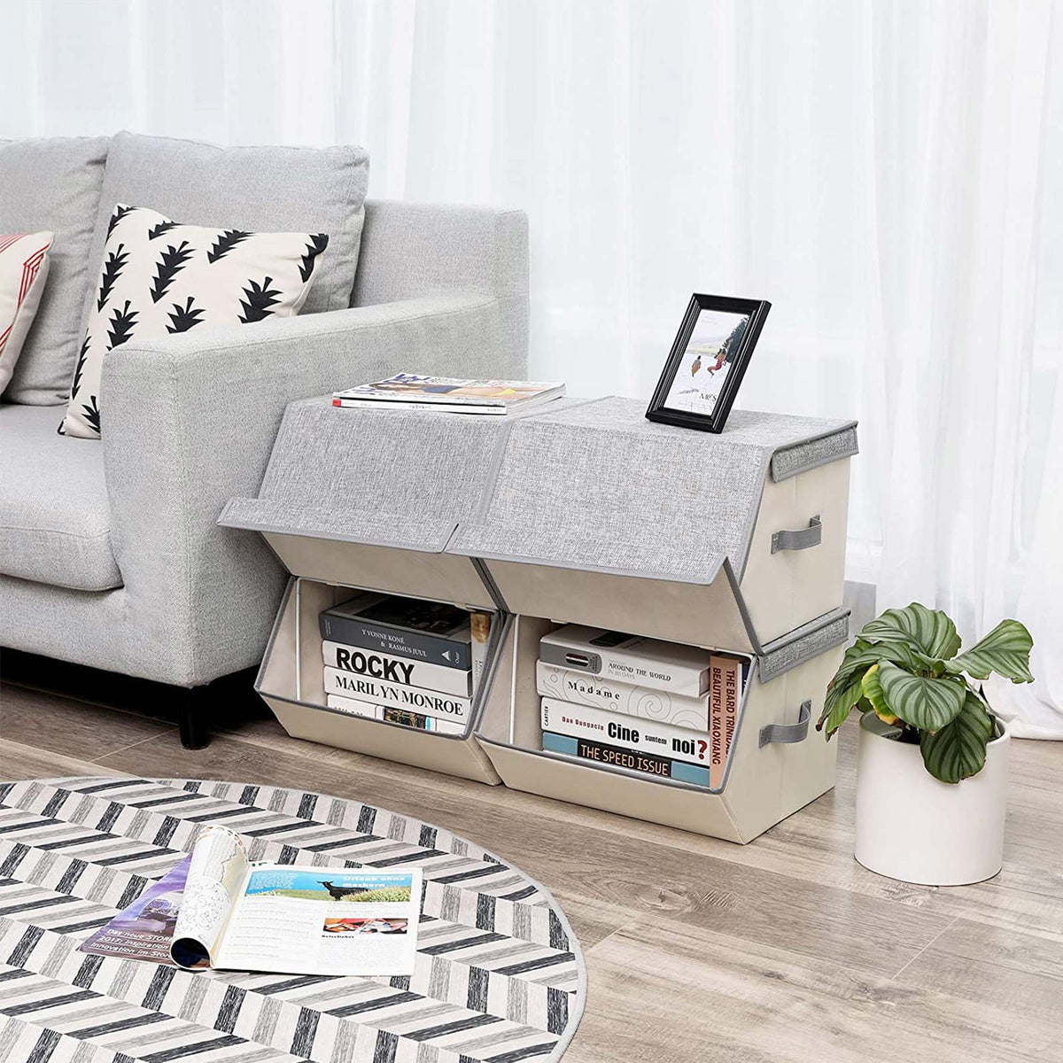 Opbergdozen met metalen frames 38 x 25 x 26,5/35 cm