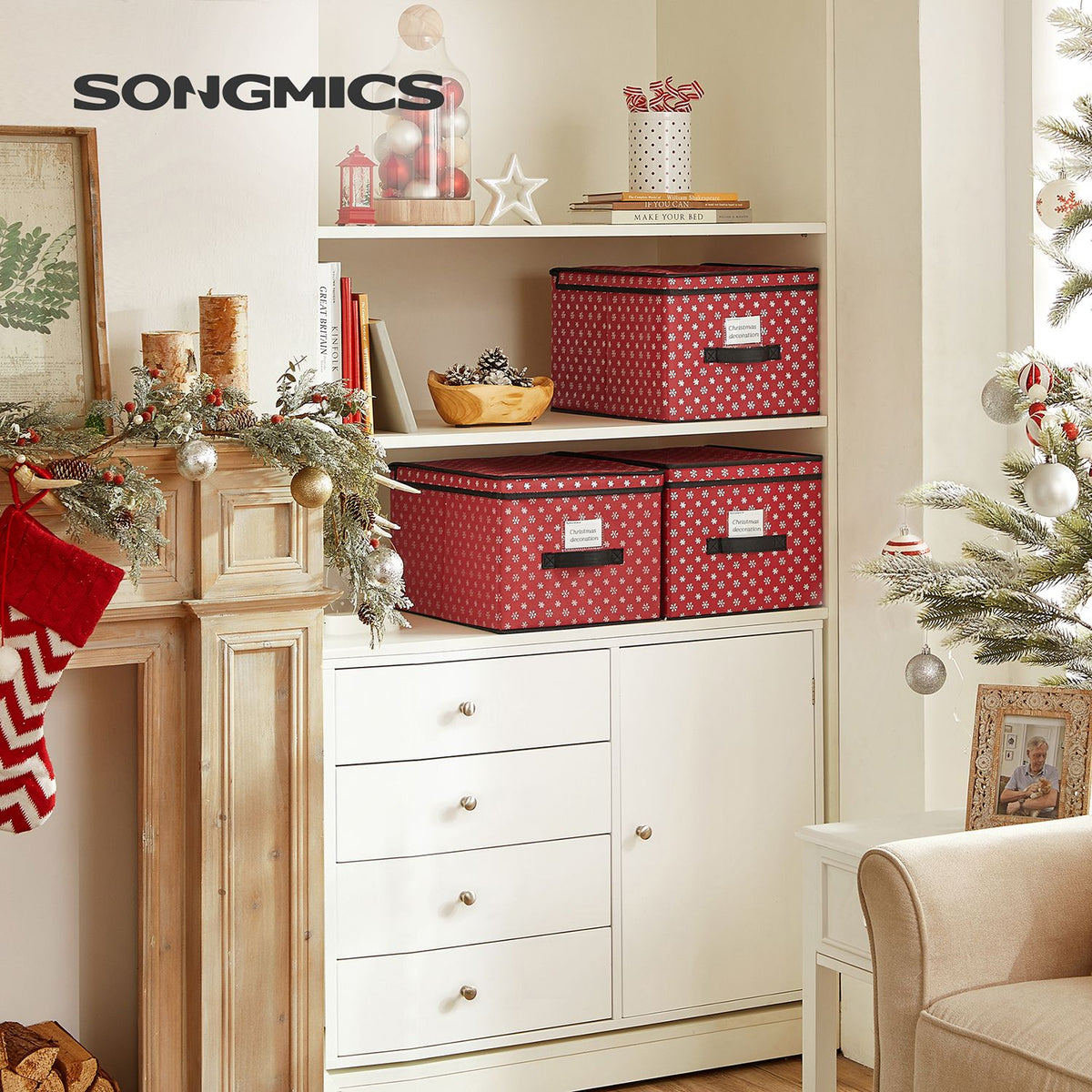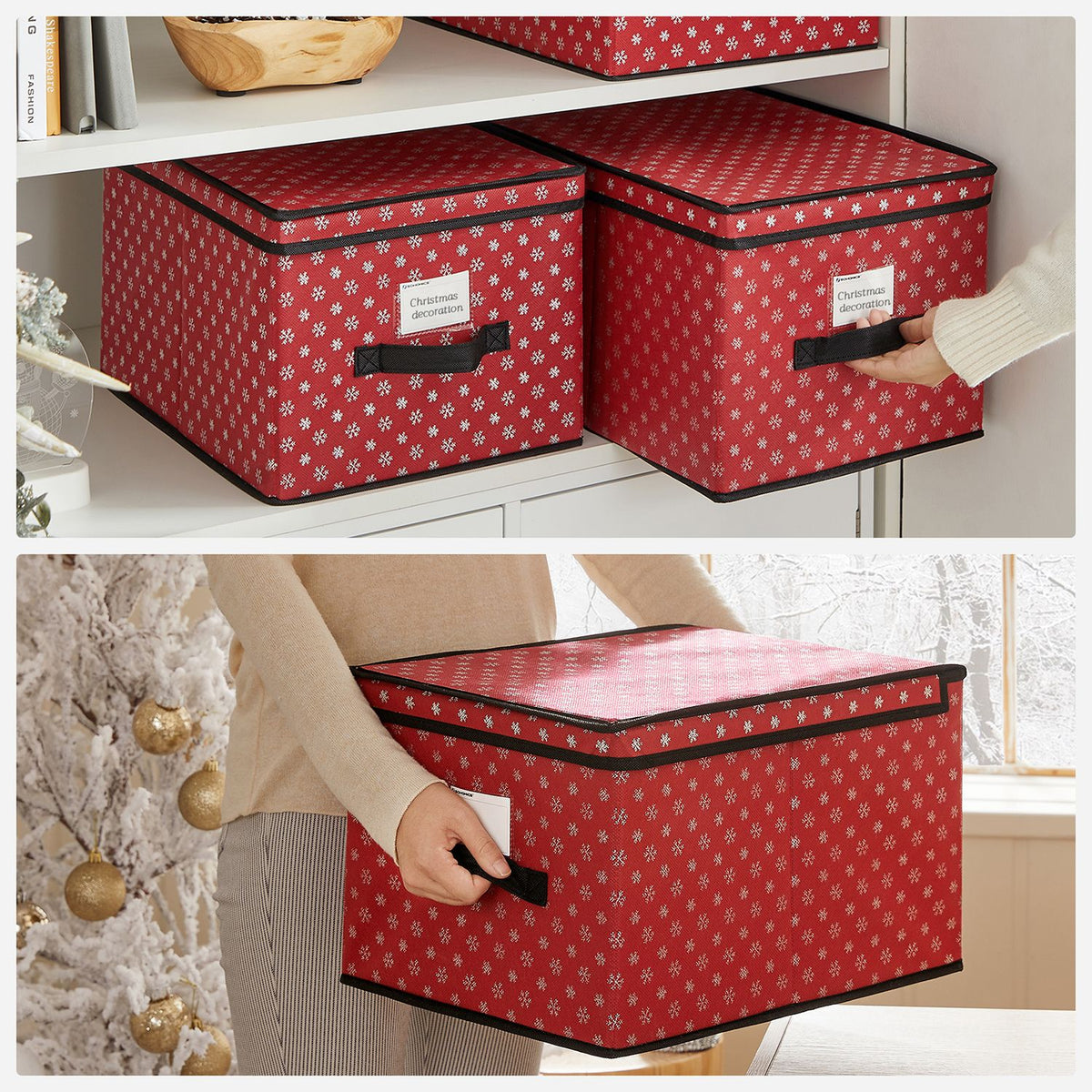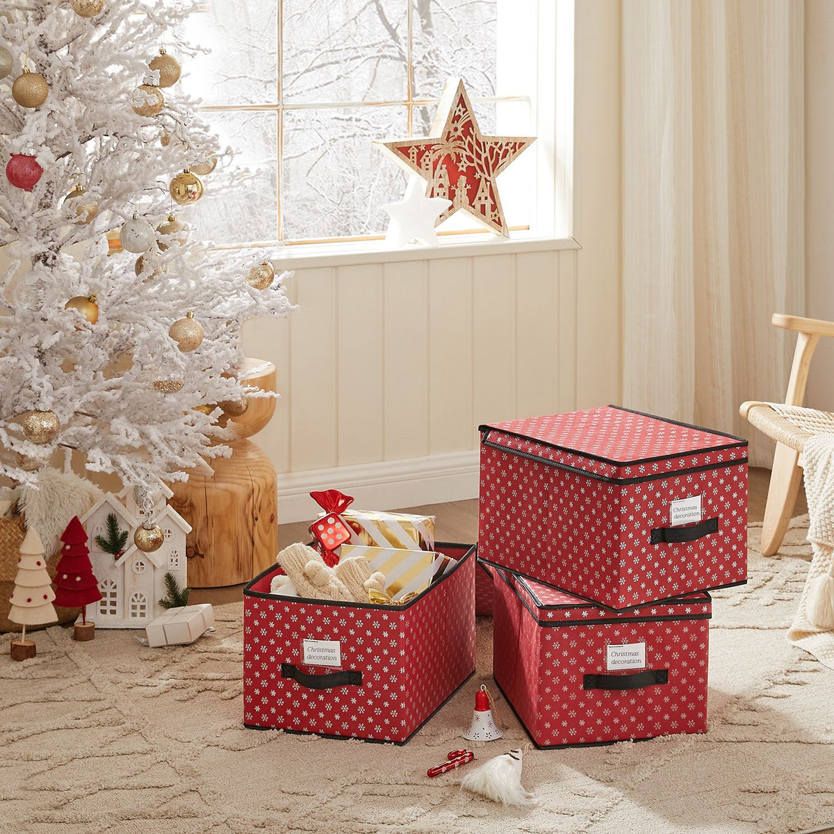 Opbergdozen set van 3 rood 30 x 40 x 25 cm