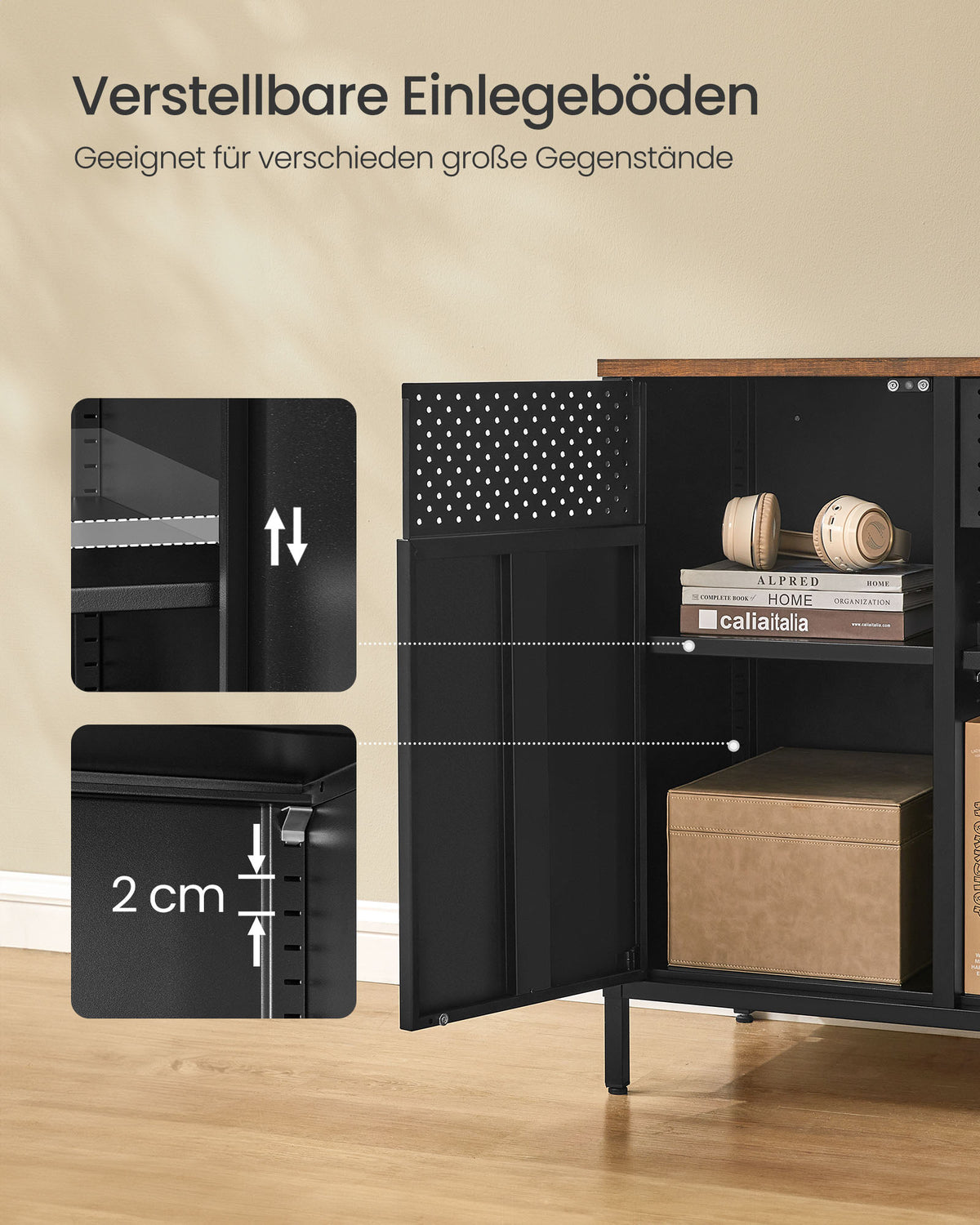 Opbergkast met dubbele deur vintage bruin-mat zwart 40 x 110 x 76 cm
