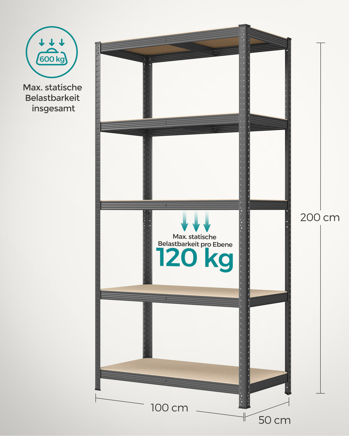 Opbergplank 200 cm hoog grijs