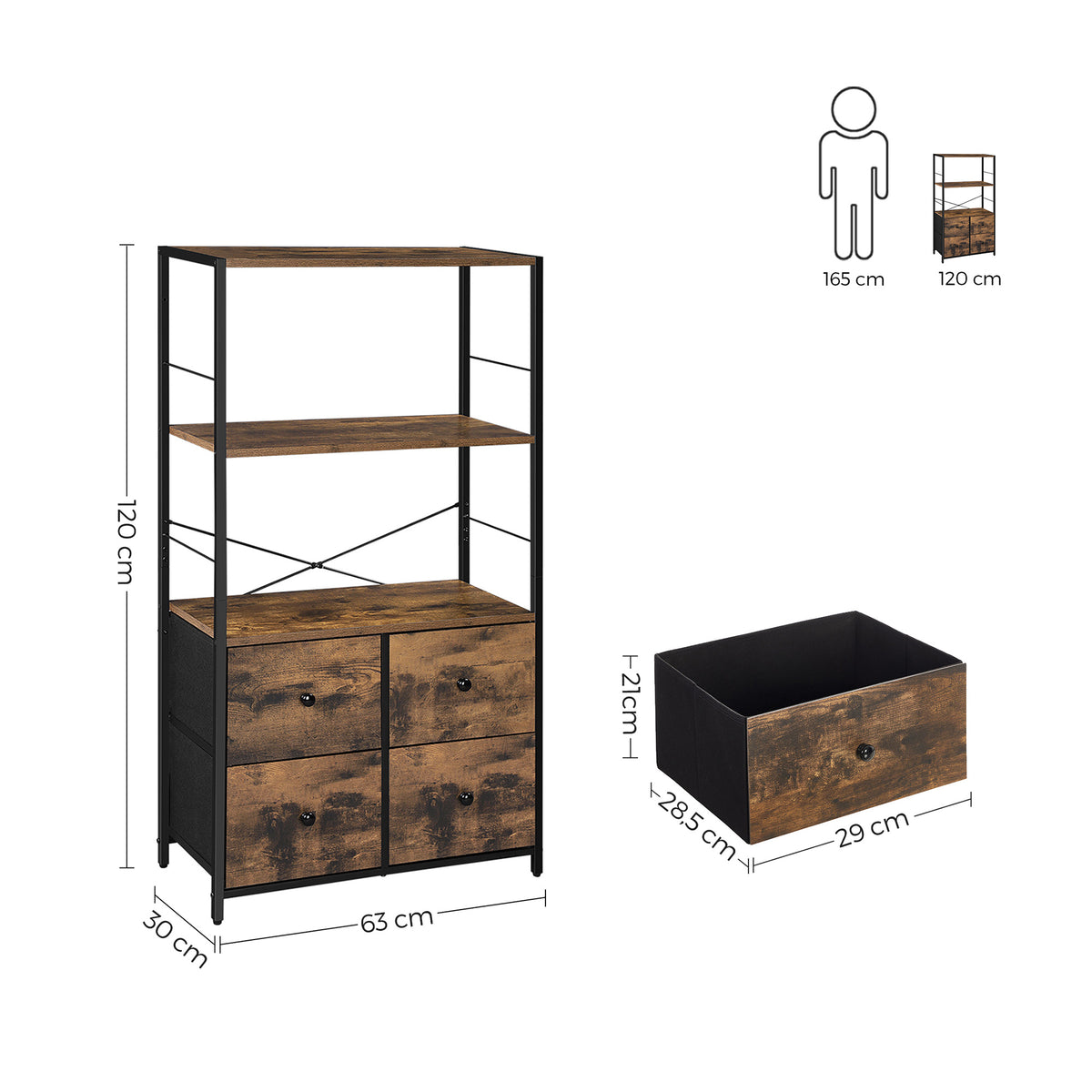 Opbergplank met stoffen lades 63 x 30 x 120 cm