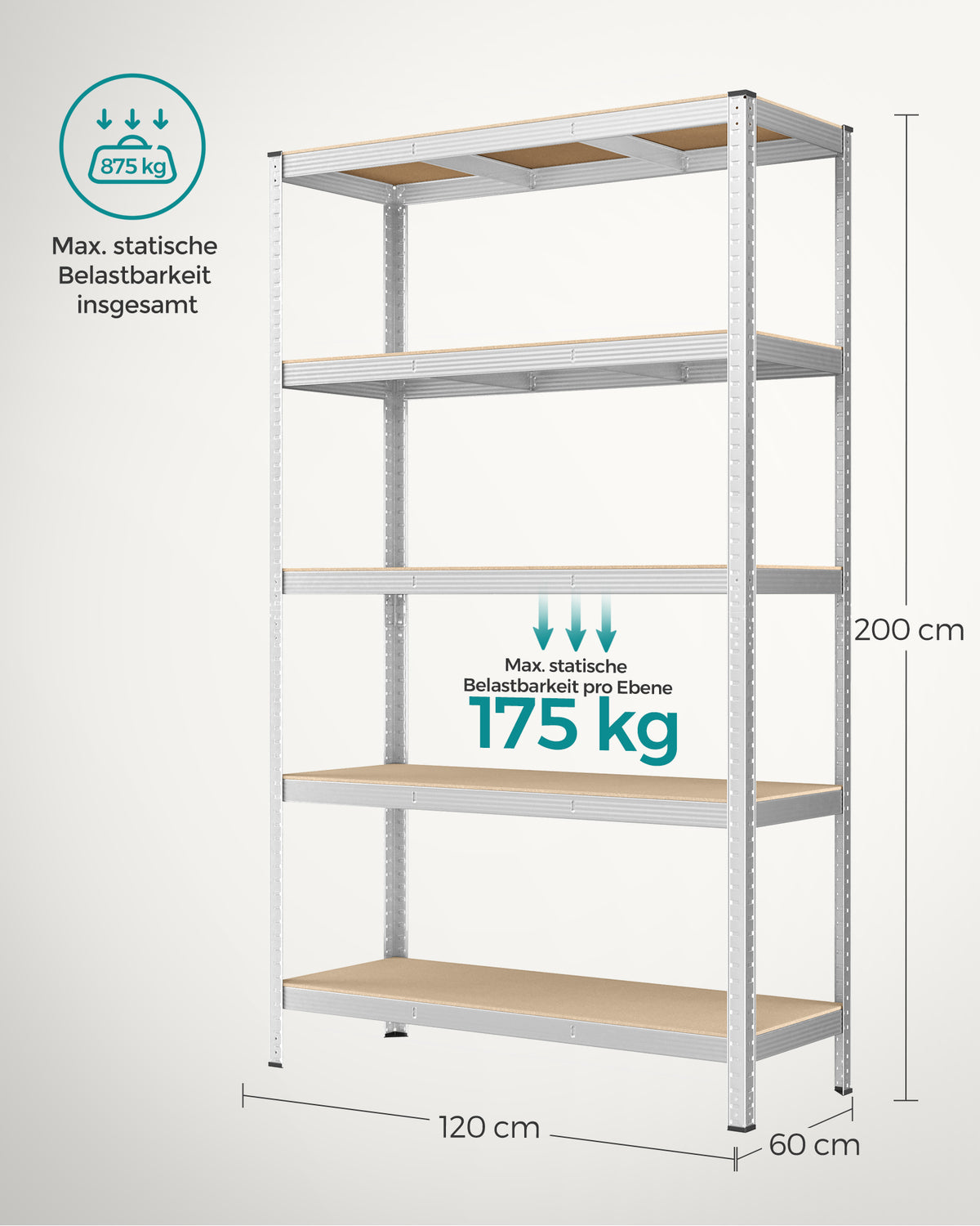 Opbergrek met 5 verstelbare planken 200 x 120 x 60 cm