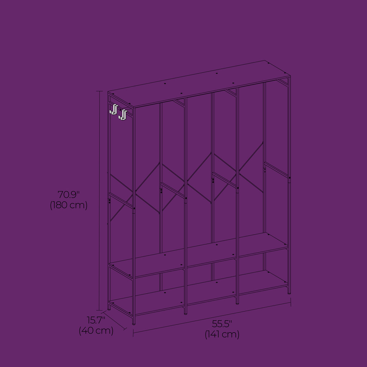 Open kledingkast, kledingrek, kledingkast met kledingstang 40 x 141 x 180 cm