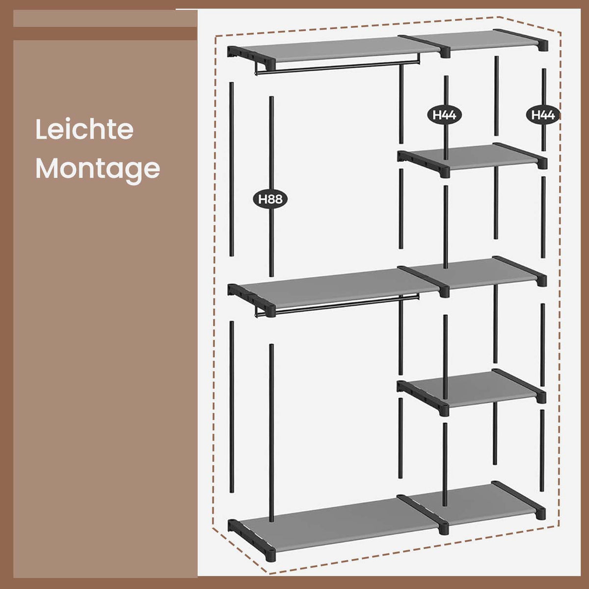 open kledingkast, kledingrek, kledingroede 112 x 43 x 165 cm
