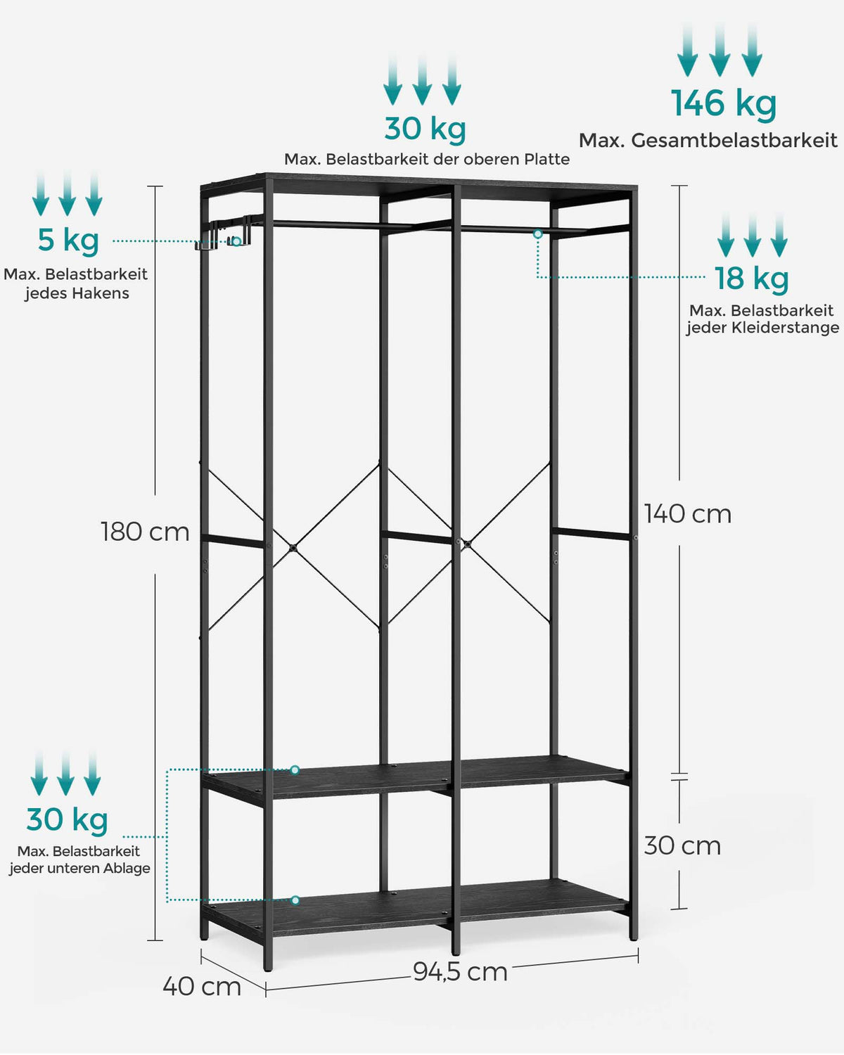 Open kledingkast met kledingroede ebbenhoutzwart 5 x 180 cm