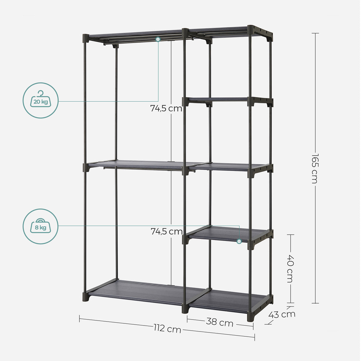 open kledingkast zelfdragende verticale plank 112 x 43 x 165 cm