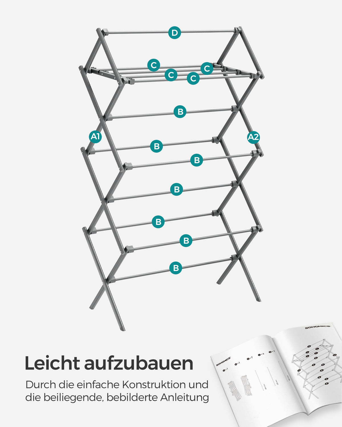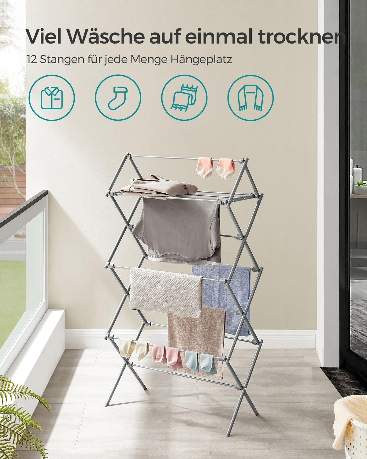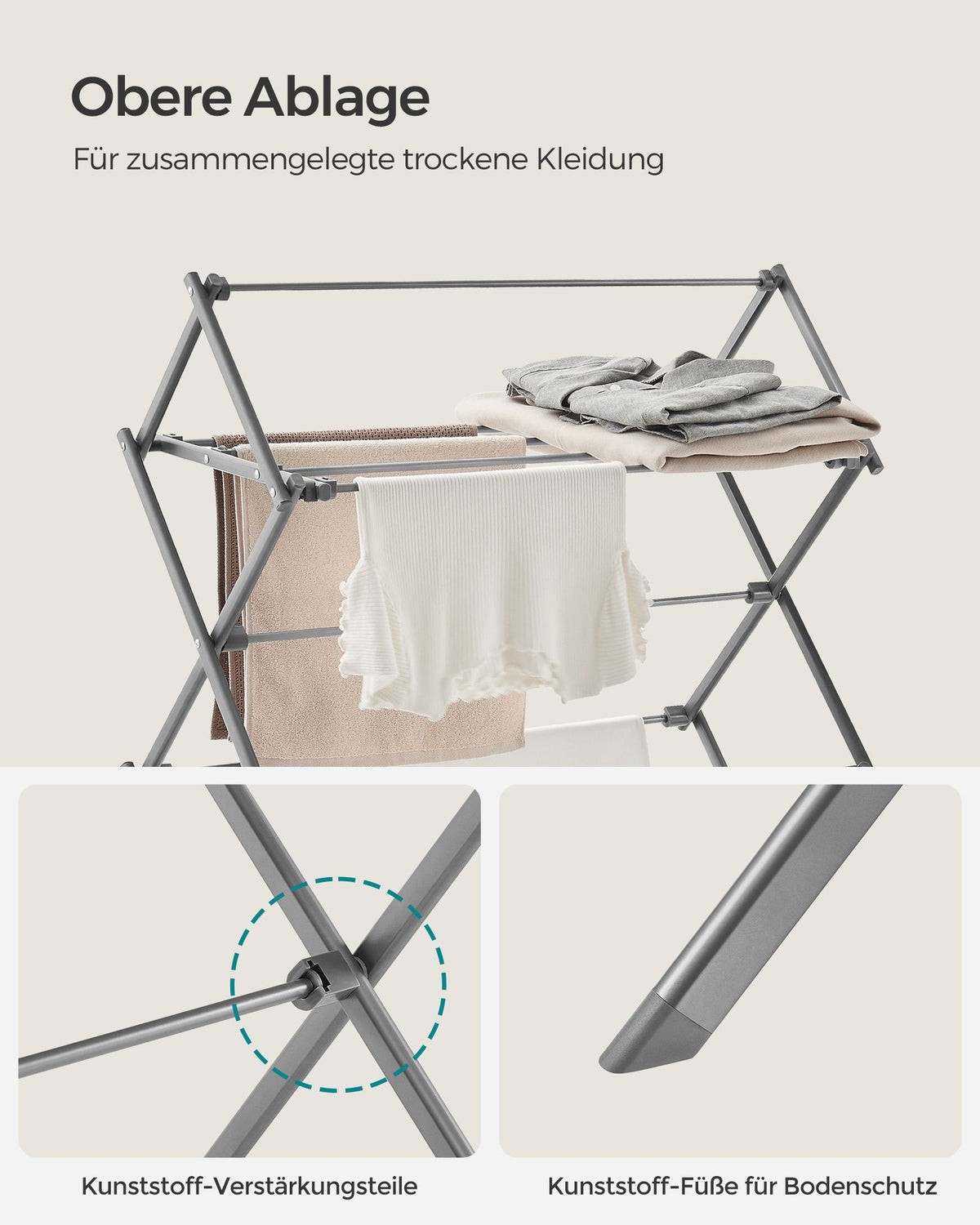 Opvouwbaar kledingrek met grijs stalen frame 1 cm