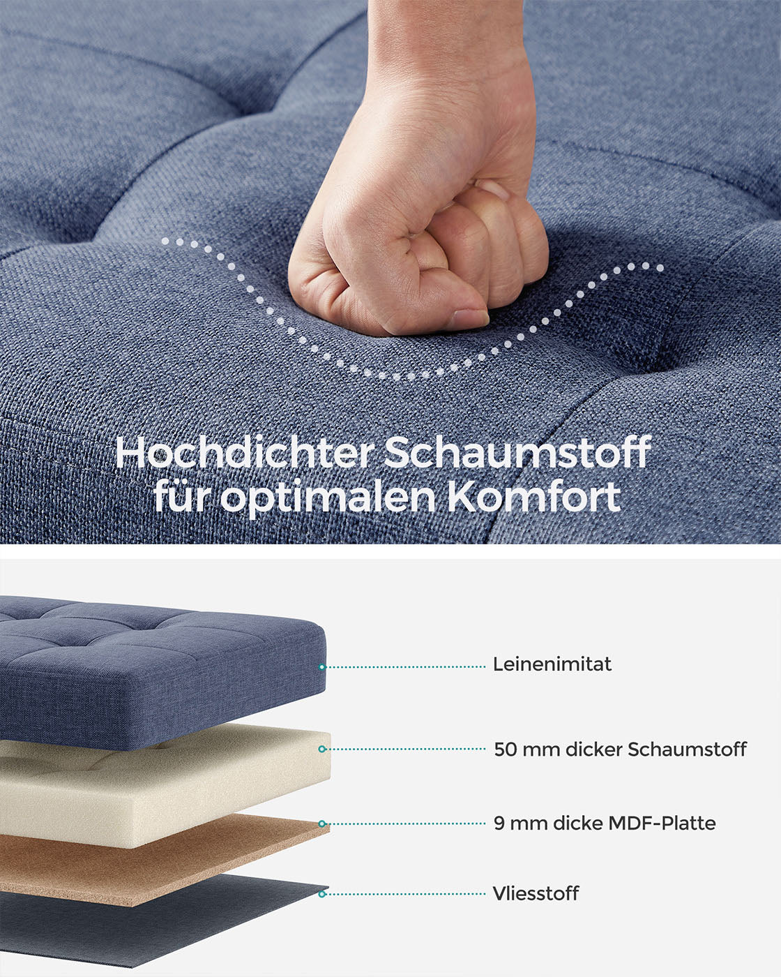 Opvouwbare bank 38 x 76 x 40 cm met opbergruimte licht denimblauw