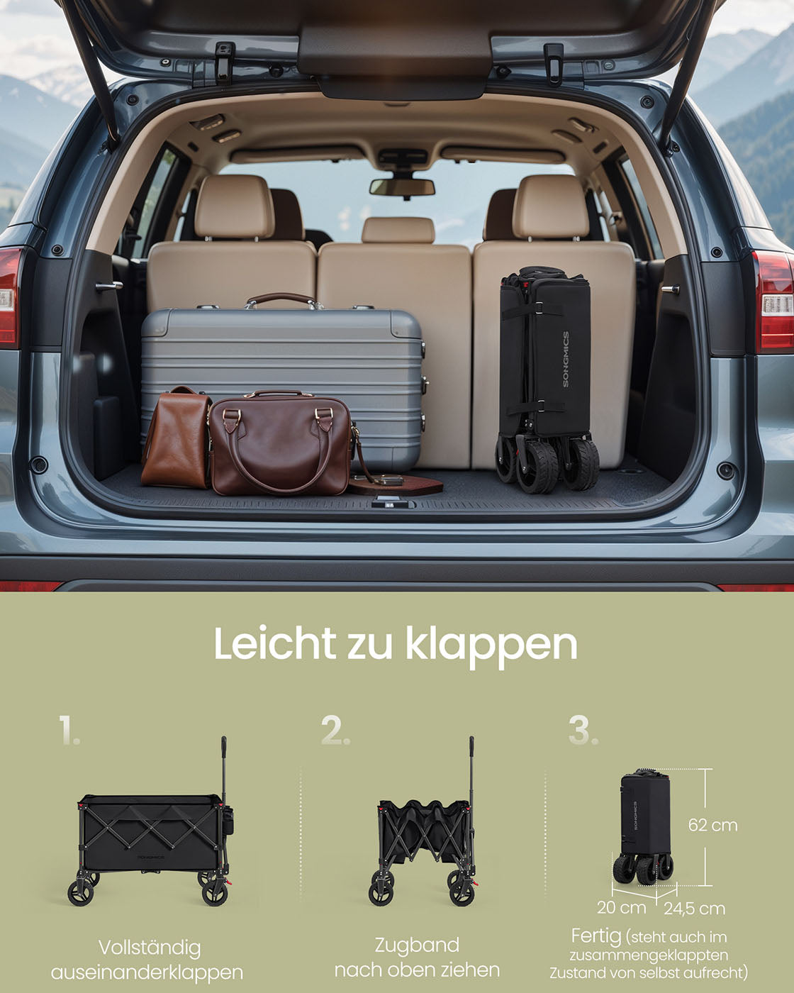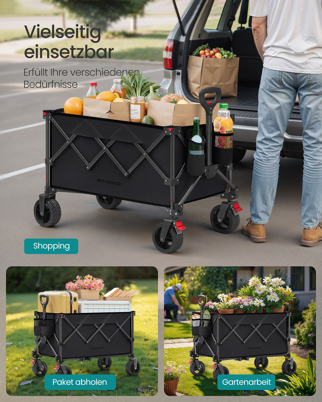 Opvouwbare handkar met handvat en 4 afneembare wielen inktzwart 5 cm