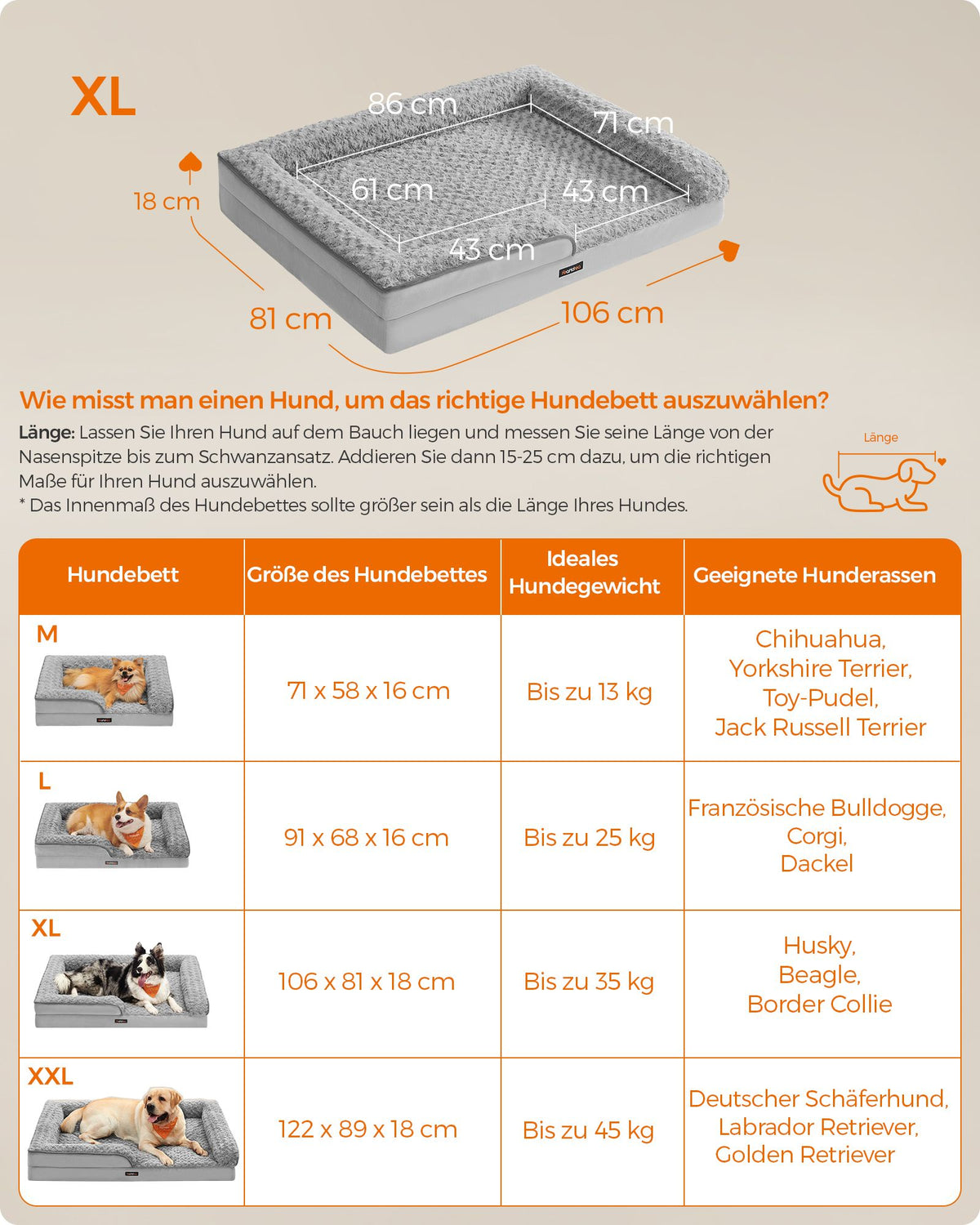 Orthopedisch hondenbed met pluche hoes, duifgrijs 71 x 58 x 16 cm