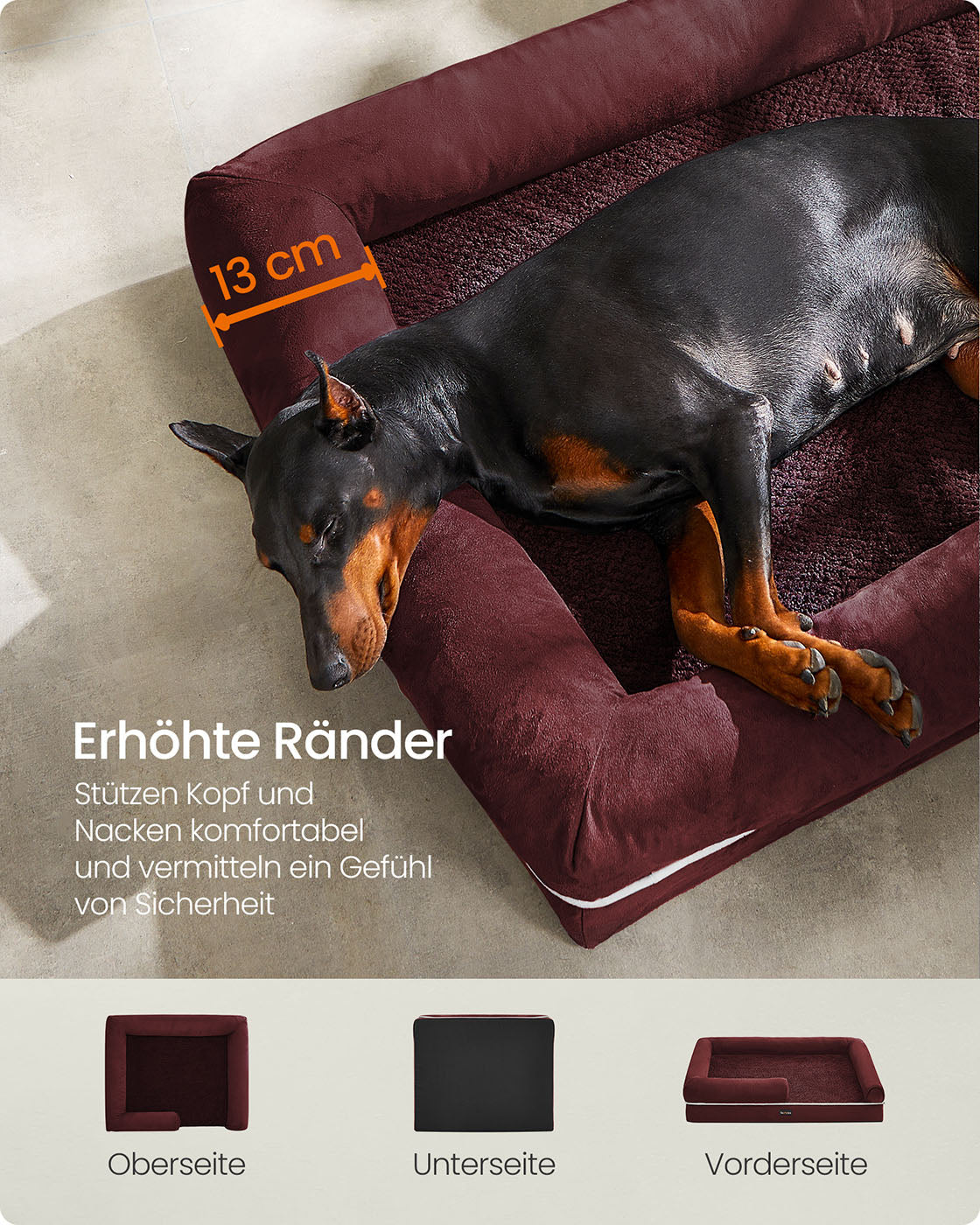 Orthopedisch hondenbed met uitneembaar kussen 120 x 85 x 20 cm bessenrood