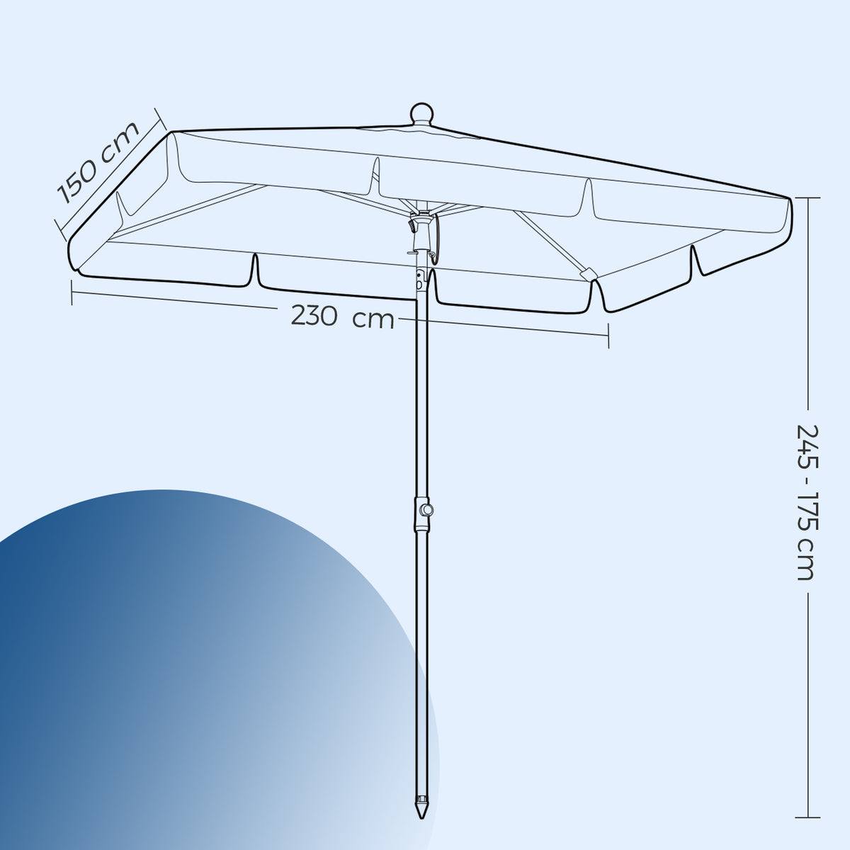 Parasol 230 x 150 cm, balkonparasol UPF 50+, zonwering - GPUB35044G01