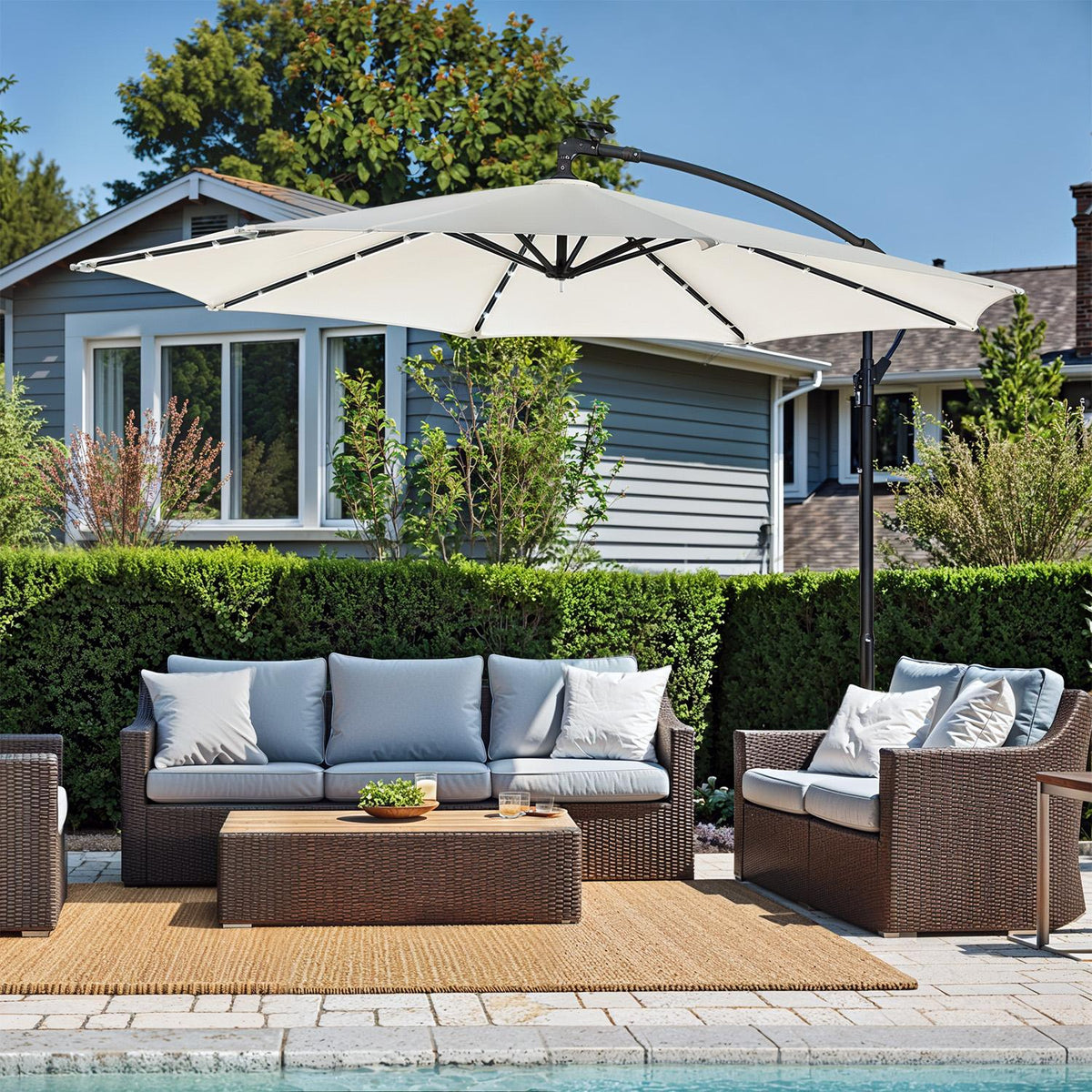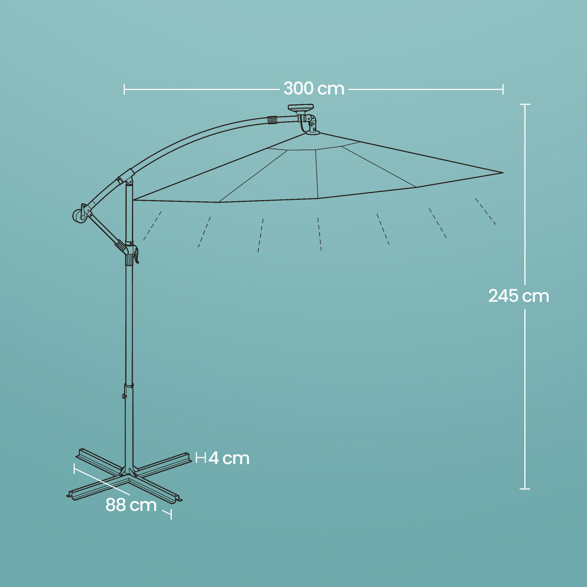 Parasol met LED-zonneverlichting, zweefparasol 300 cm d, 32 LED-lampen - GPUB35118M01