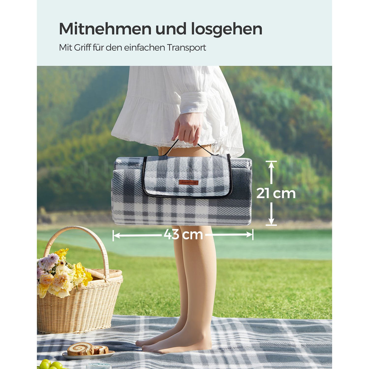 Picknickkleed 300 x 200 cm waterdicht grijswit