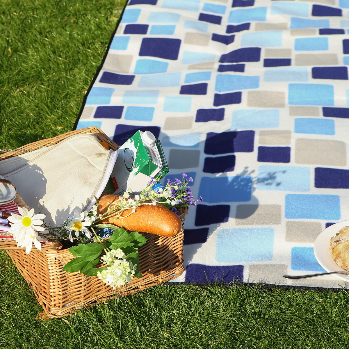 Picknickkleed fleece blauw gevlekt XXL 200 x 200 cm