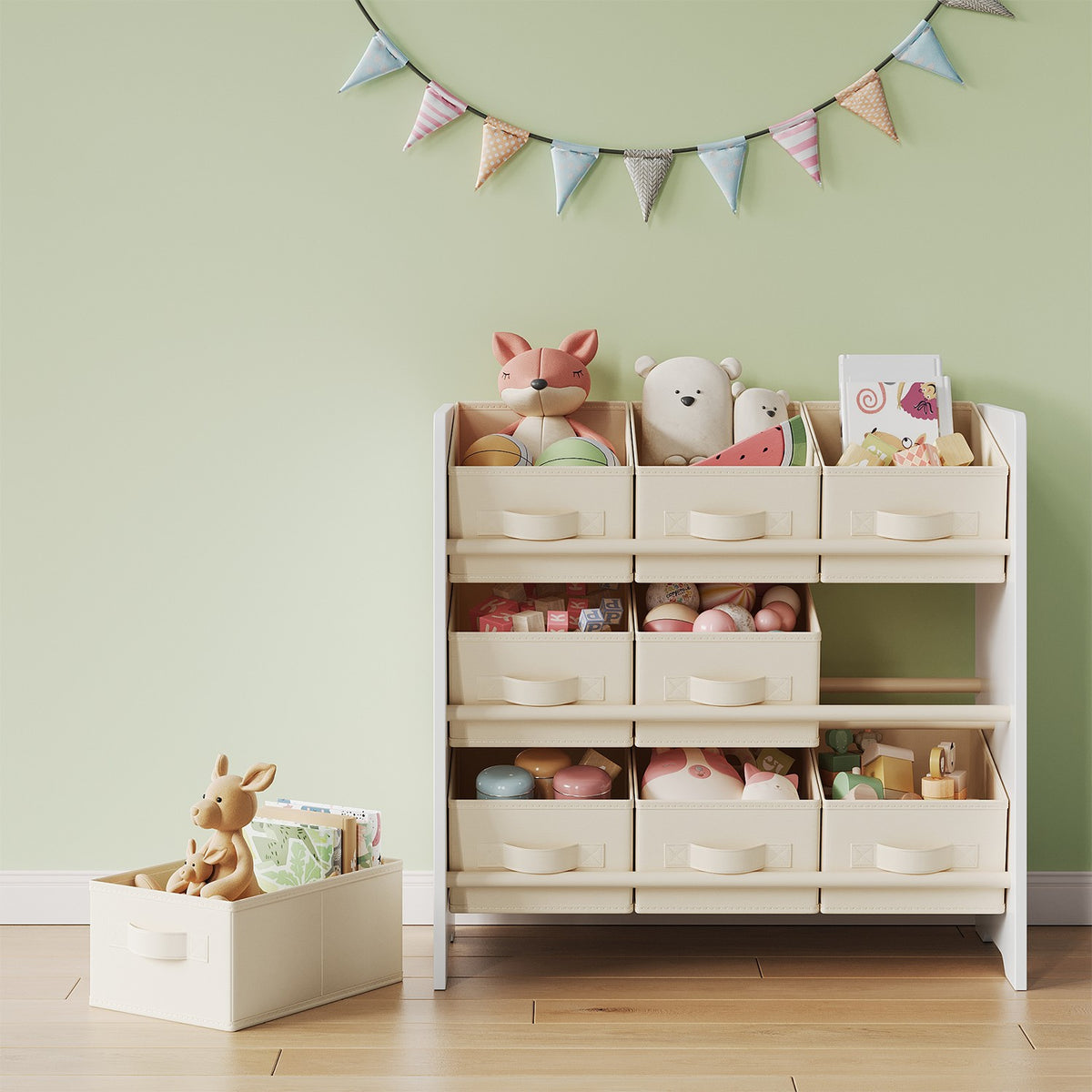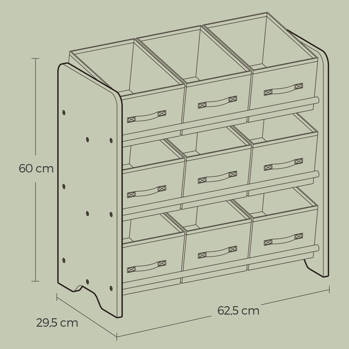 Plank, boekenkast, met 9 opbergvakken van vliesstof 5 x 60 cm - GKRB35033W10