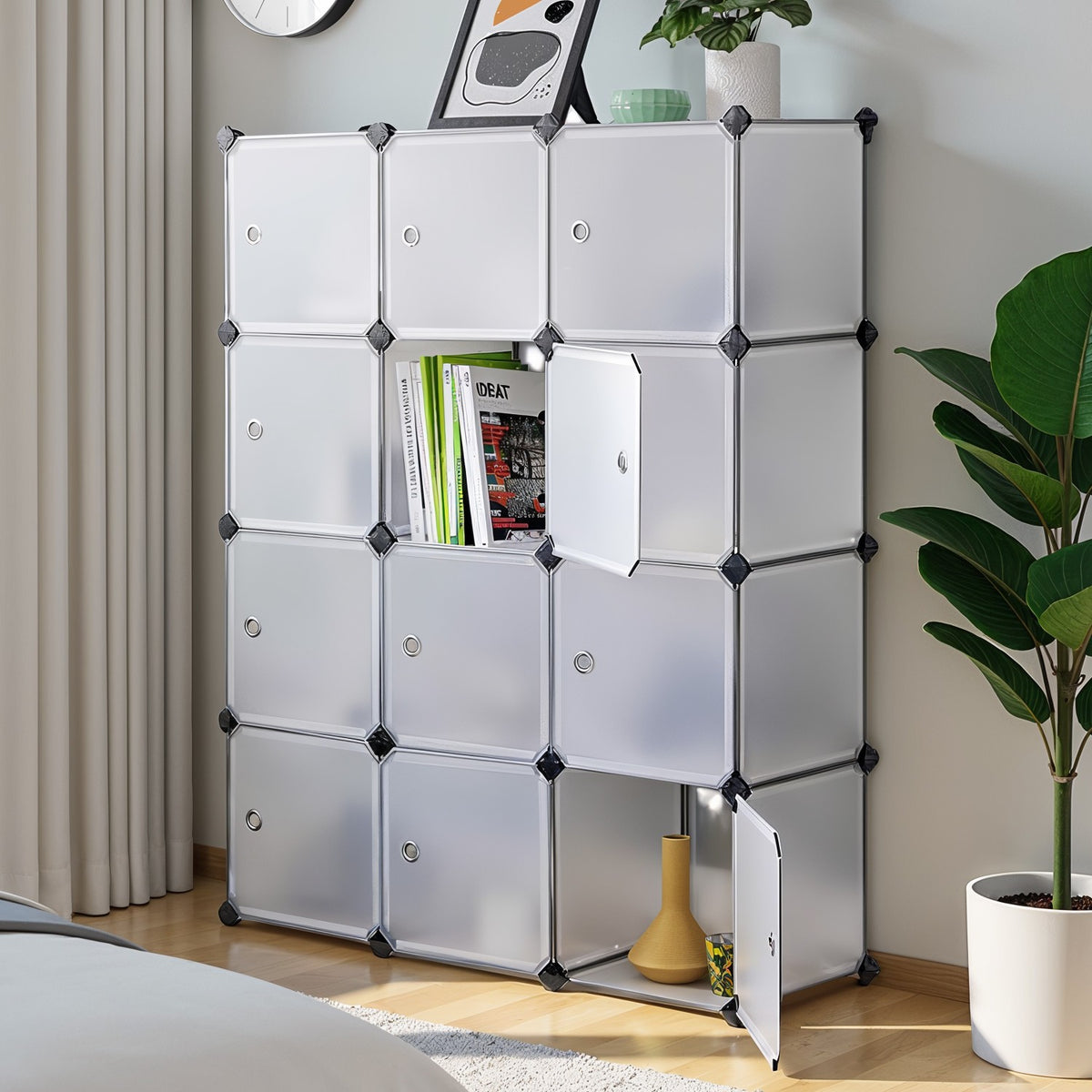 Plankensysteem, schoenenrek met deuren, set van 12 kubussen 93 x 31 x 123 cm