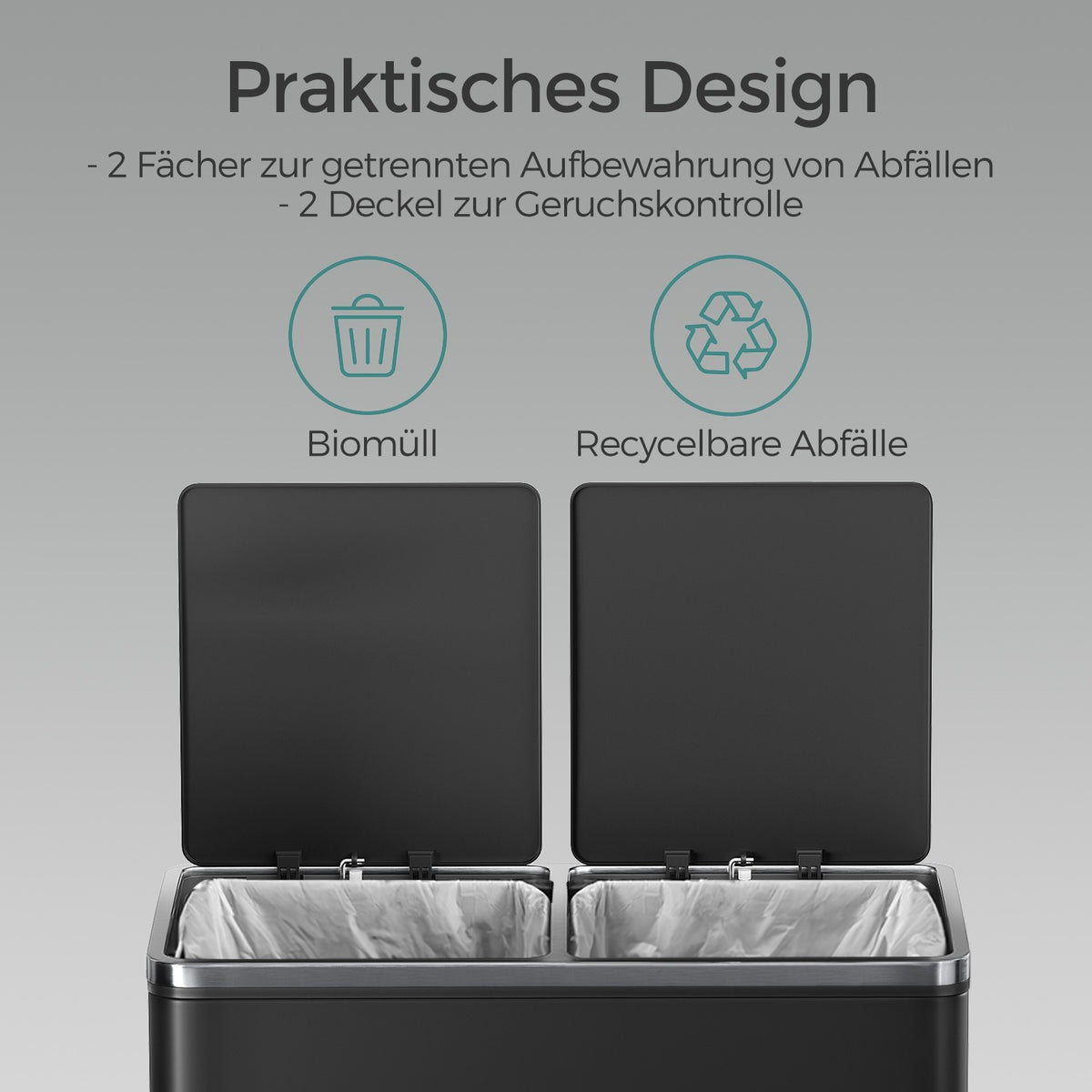 Prullenbak, 2 x 30 liter, 2 compartimenten 2 cm