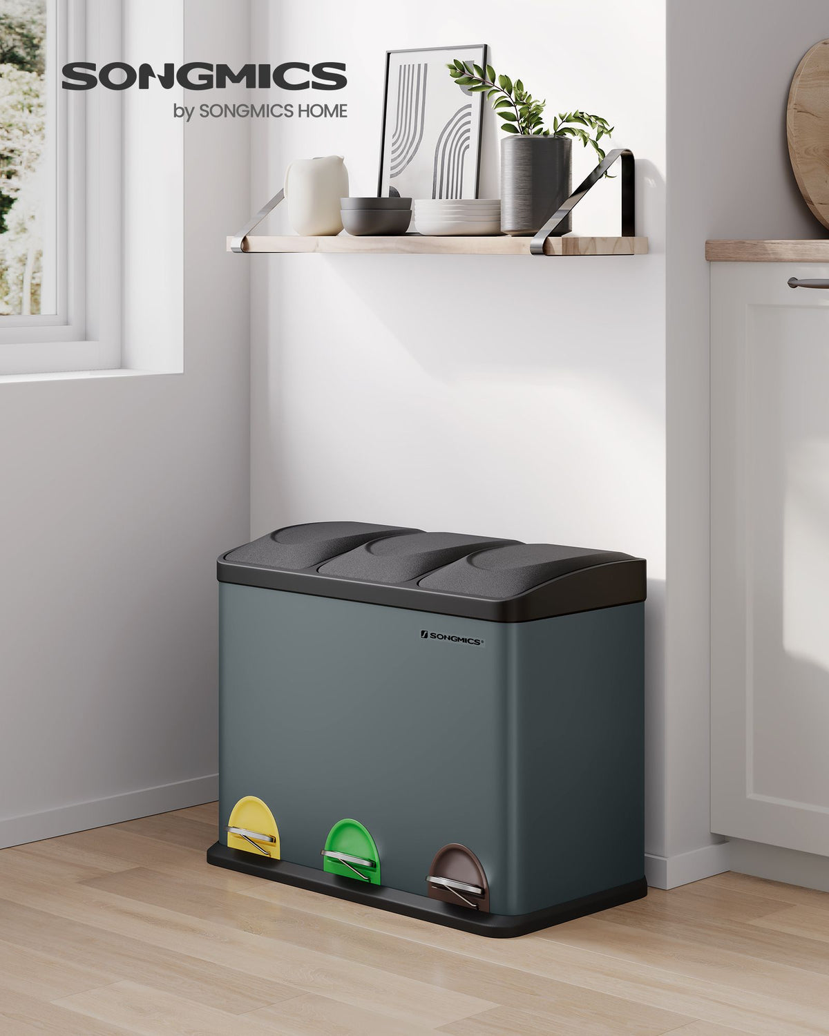 Prullenbak 3 x 15 liter met deksel en binnenemmer rookgrijs-zwart 5 cm