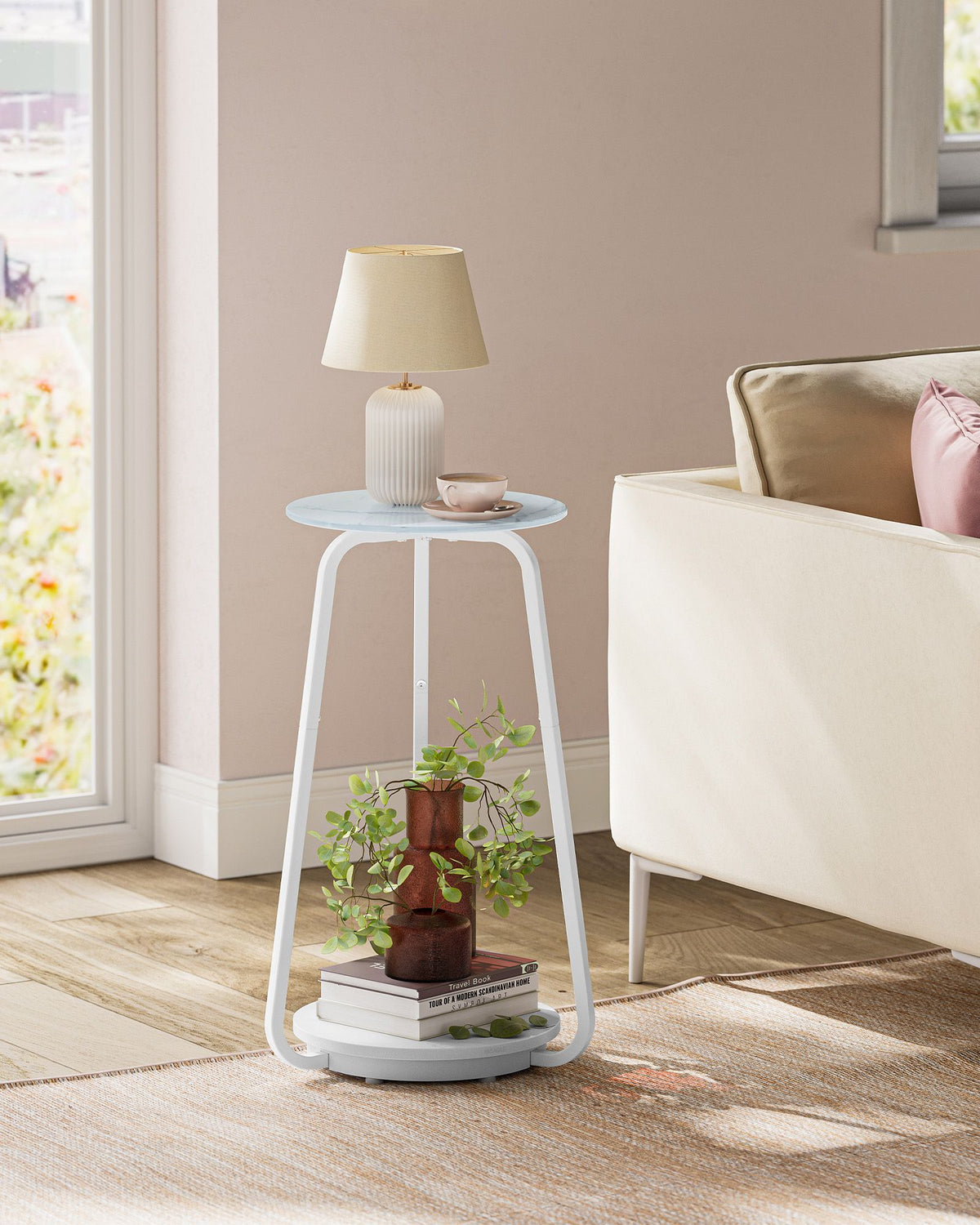 Ronde bijzettafel met 2 niveaus en glazen blad en plank 30 cm - B34LET287W59